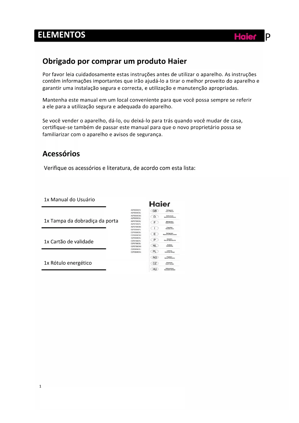 Encontre gratuitamente o manual do aparelho A2FE735COJ HAIER em formato PDF.