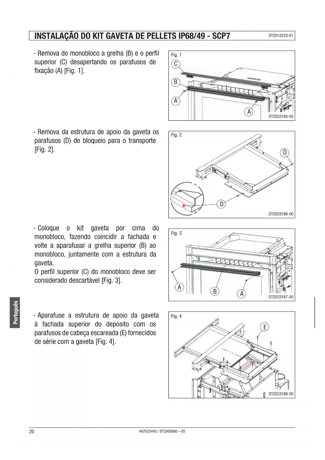 INSTALAÇÃO DO KIT GAVETA DE PELLETS IP78/58 - IP78/68 - SCP9 DT2012460-00