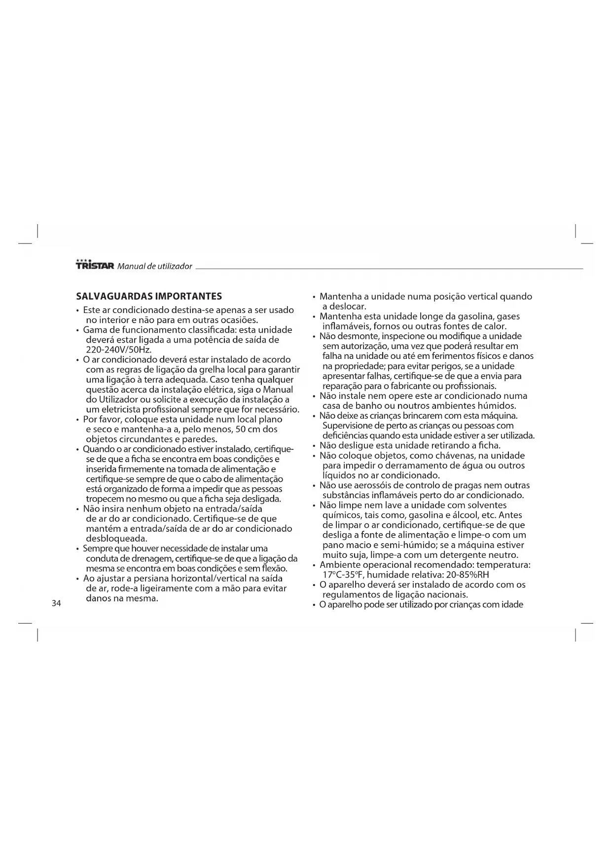 MANUAL DE UTILIZADOR AC5521CH TRISTAR