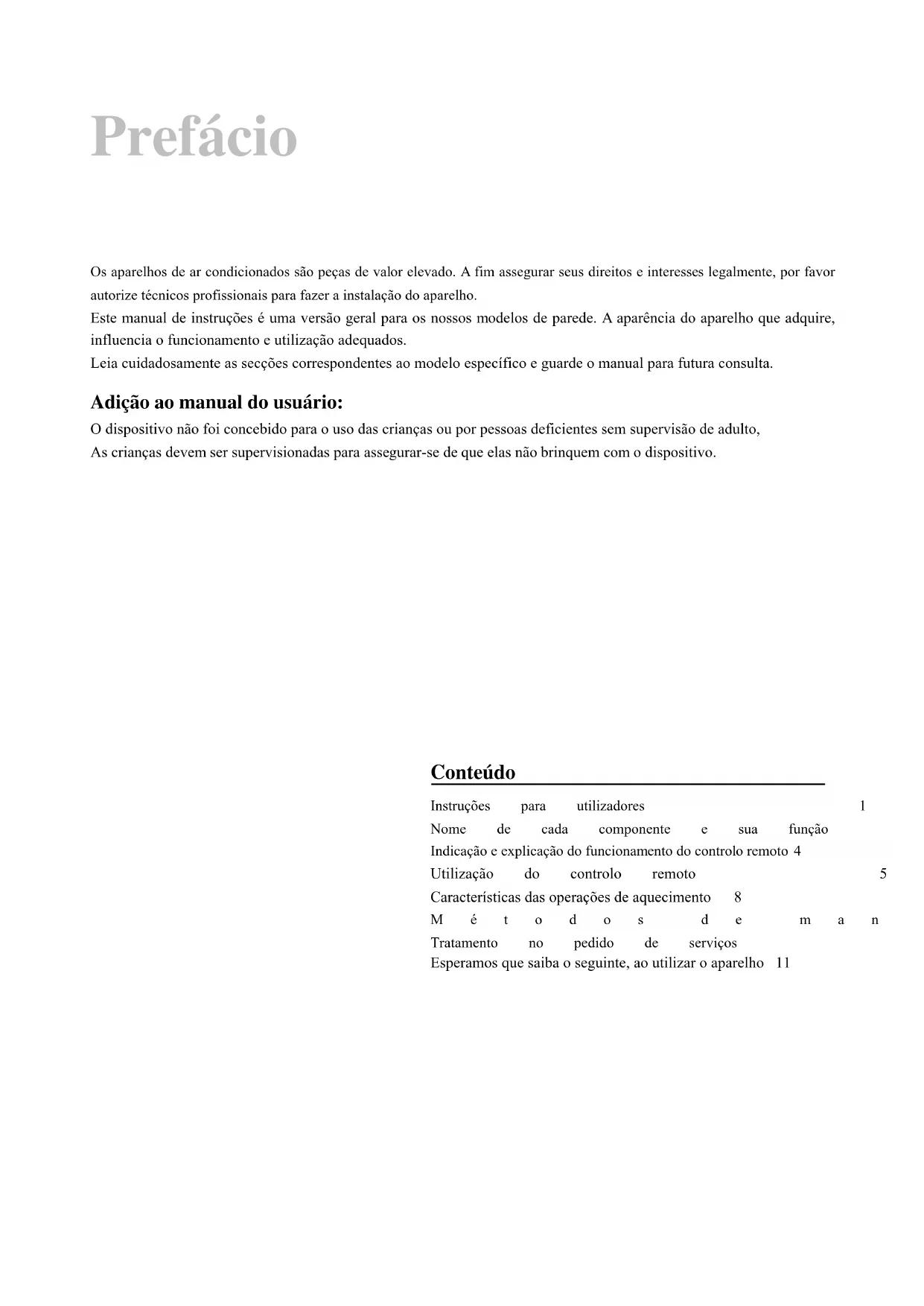 MANUAL DE USUARIO Aire acondicionado de paredPrefácio