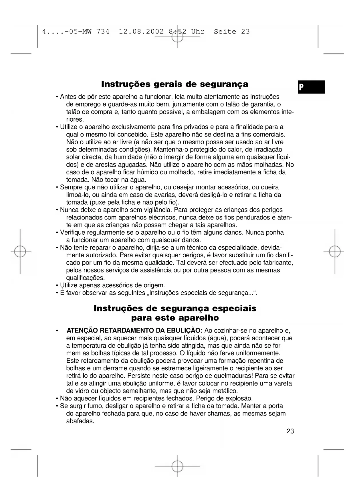 4....-05-MW 734 12.08.2002 8:52 Uhr Seite 23• O conteúdo de biberões ou de boiões com alimentos para bebés terá de ser mexido ou agitado antes de ser consumido. Deverá controlar-se ainda a tempe- ratura dos mesmos alimentos para se evitarem queimaduras.