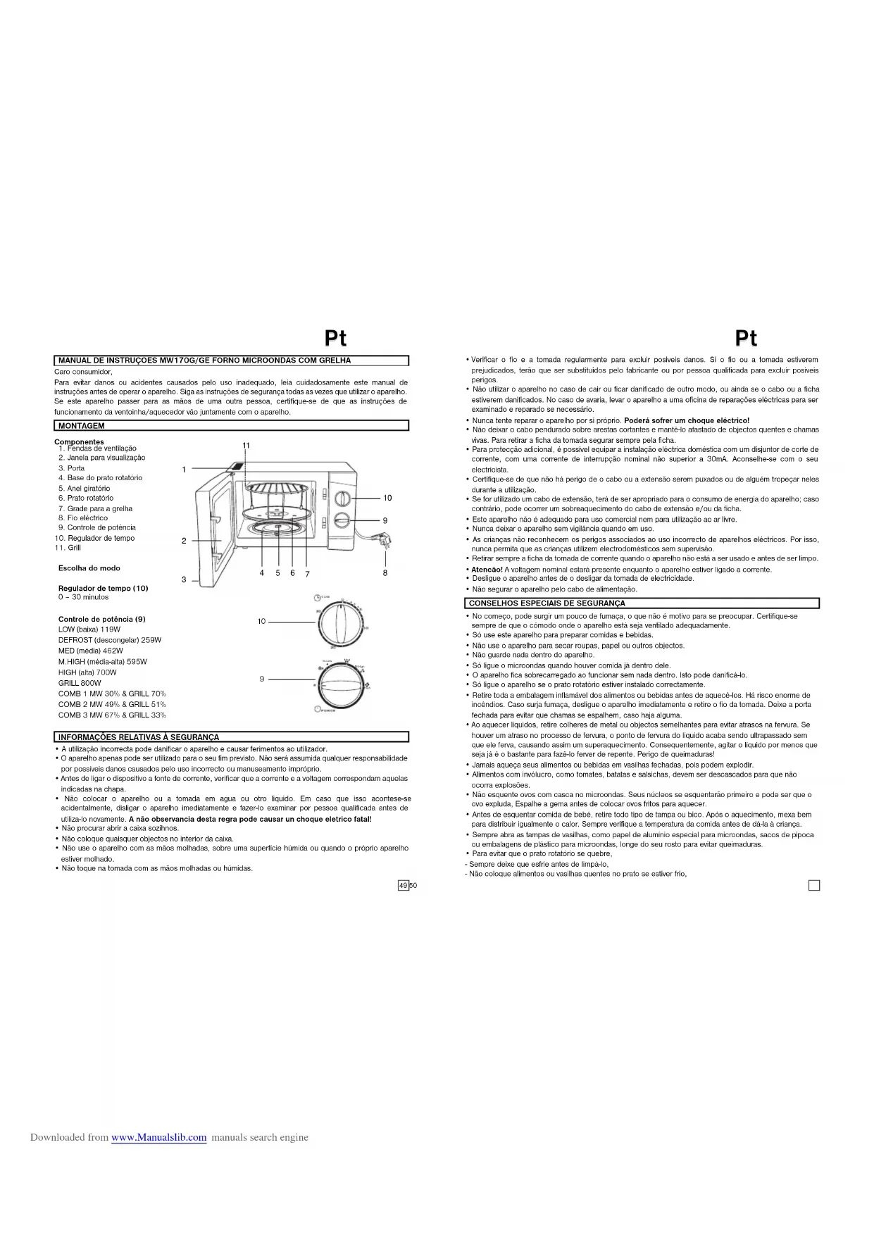 MW 170 G - Micro-ondas ELTA - Manual de utilização gratuito