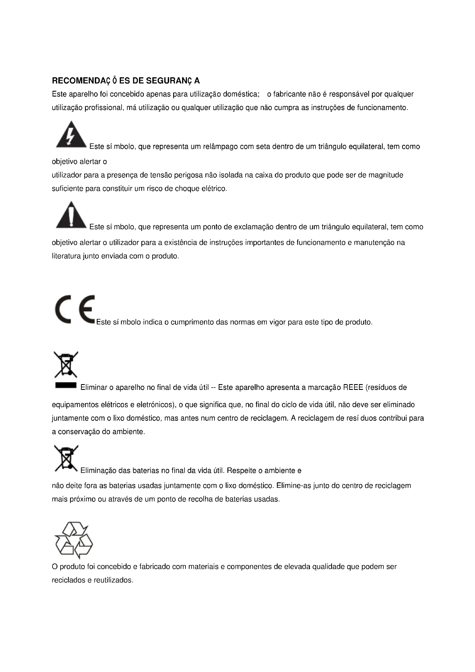 RECOMENDAÇ Õ ES DE SEGURANÇ A