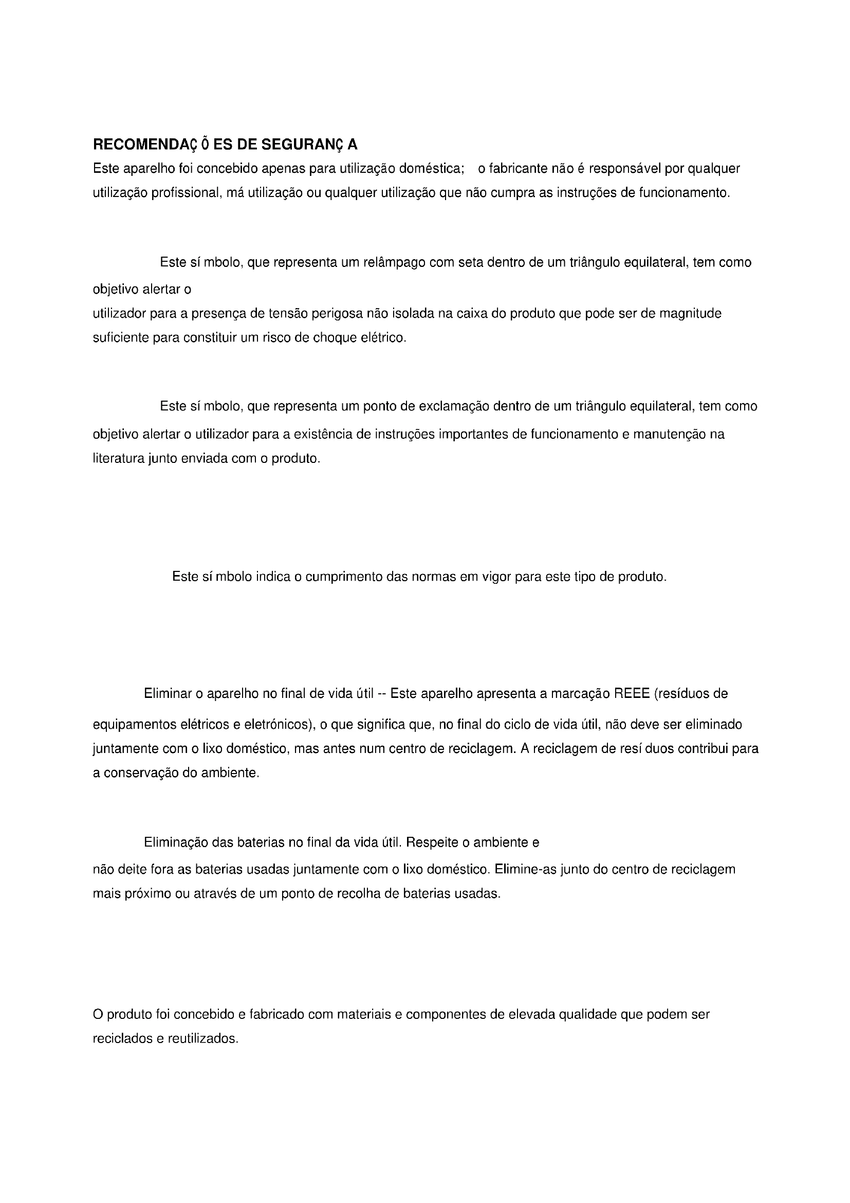 RECOMENDAÇ Õ ES DE SEGURANÇ A