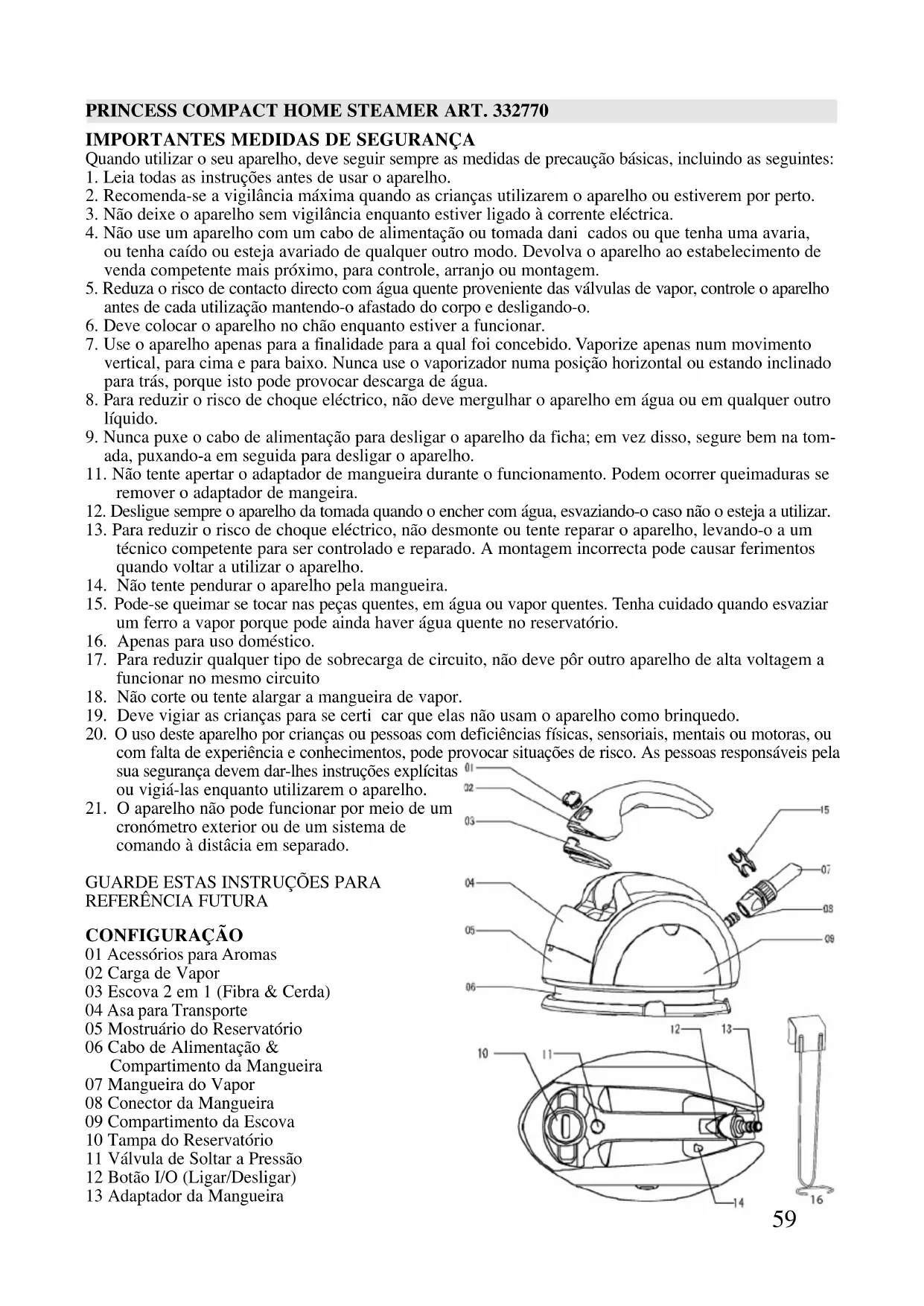 Encontre gratuitamente o manual do aparelho Compact Home Steamer 332770 PRINCESS em formato PDF.