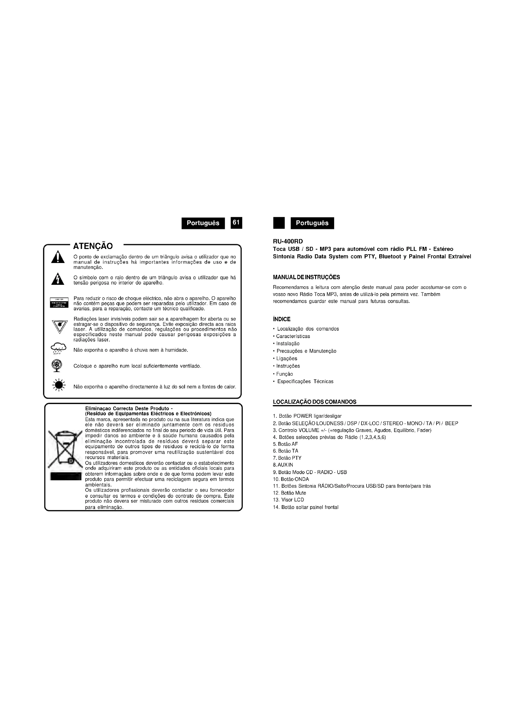 MANUAL DE UTILIZADOR RU400BT ROADSTAR