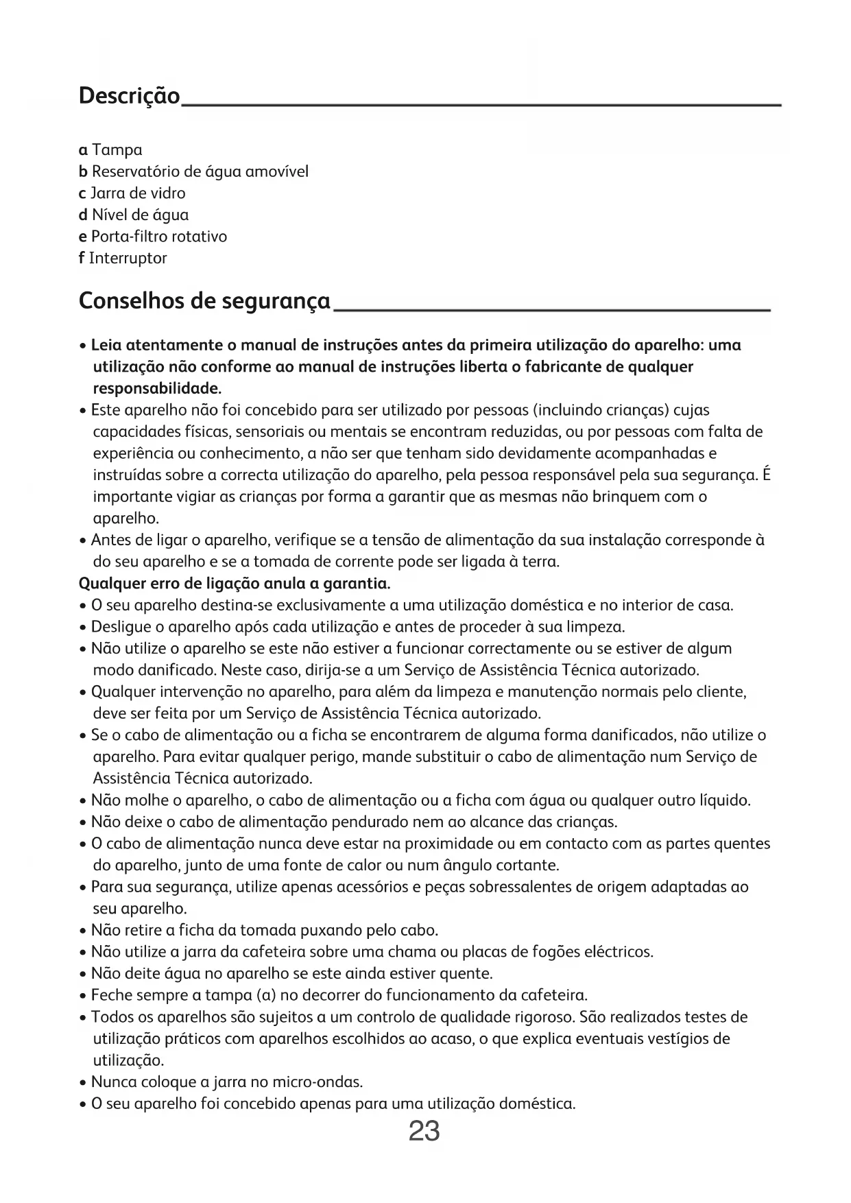 cafetie?re CM 330 CM 401 EU11 GR TU AR IR 10EC 5CEI 8000828280:Cafetière CM 330 CM 401 19/05/09 9:46 Page 22Descrição a Tampa b Reservatório de água amovível c Jarra de vidro d Nível de água e Porta-filtro rotativo f Interruptor Conselhos de segurança