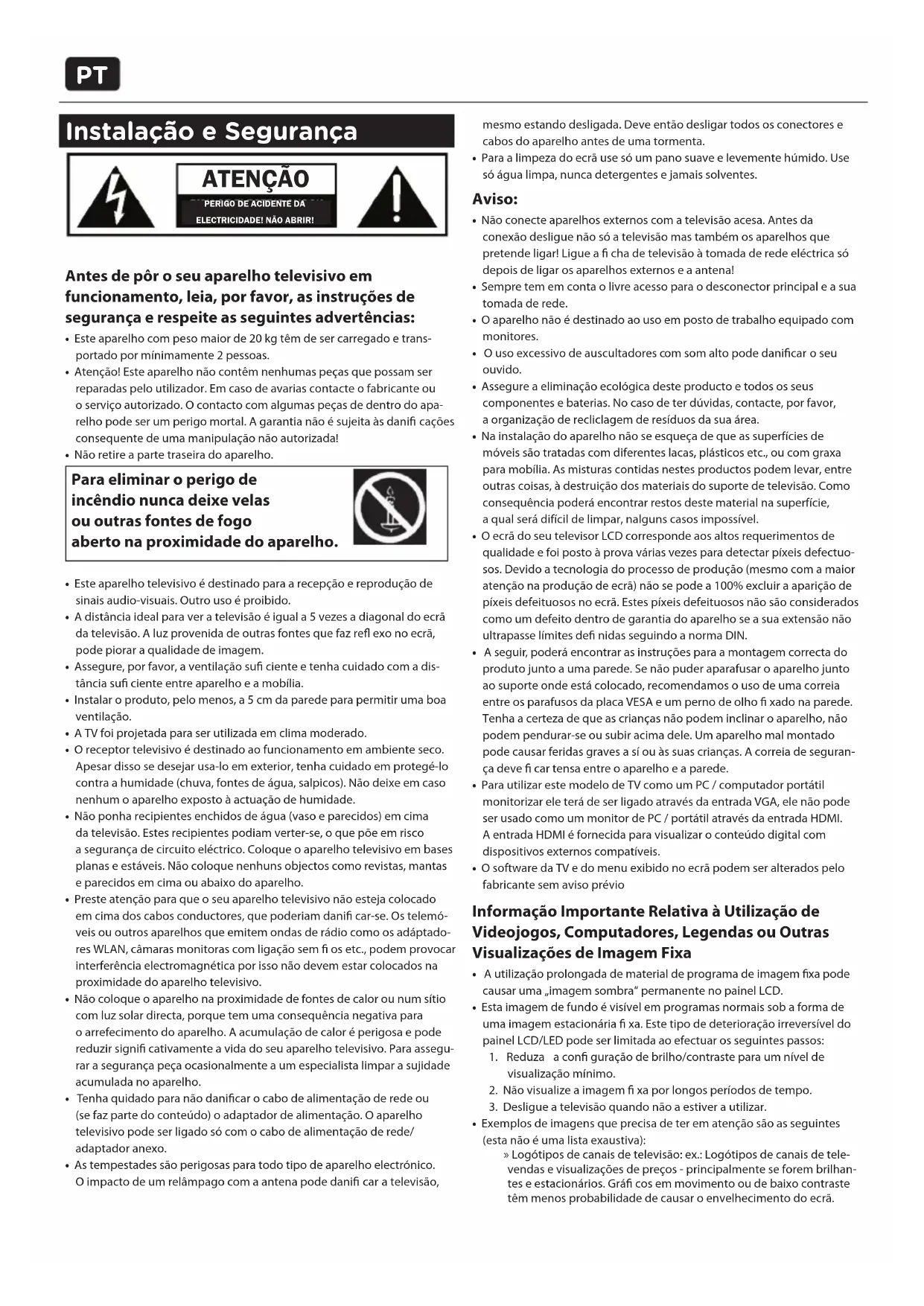 - - tylko dla modeli zodtwarzaczem DVDPT Instalação e Segurança Antes de pôr oseu aparelho televisivo em funcionamento, leia, por favor, as instruções de segurança e respeite as seguintes advertências:
