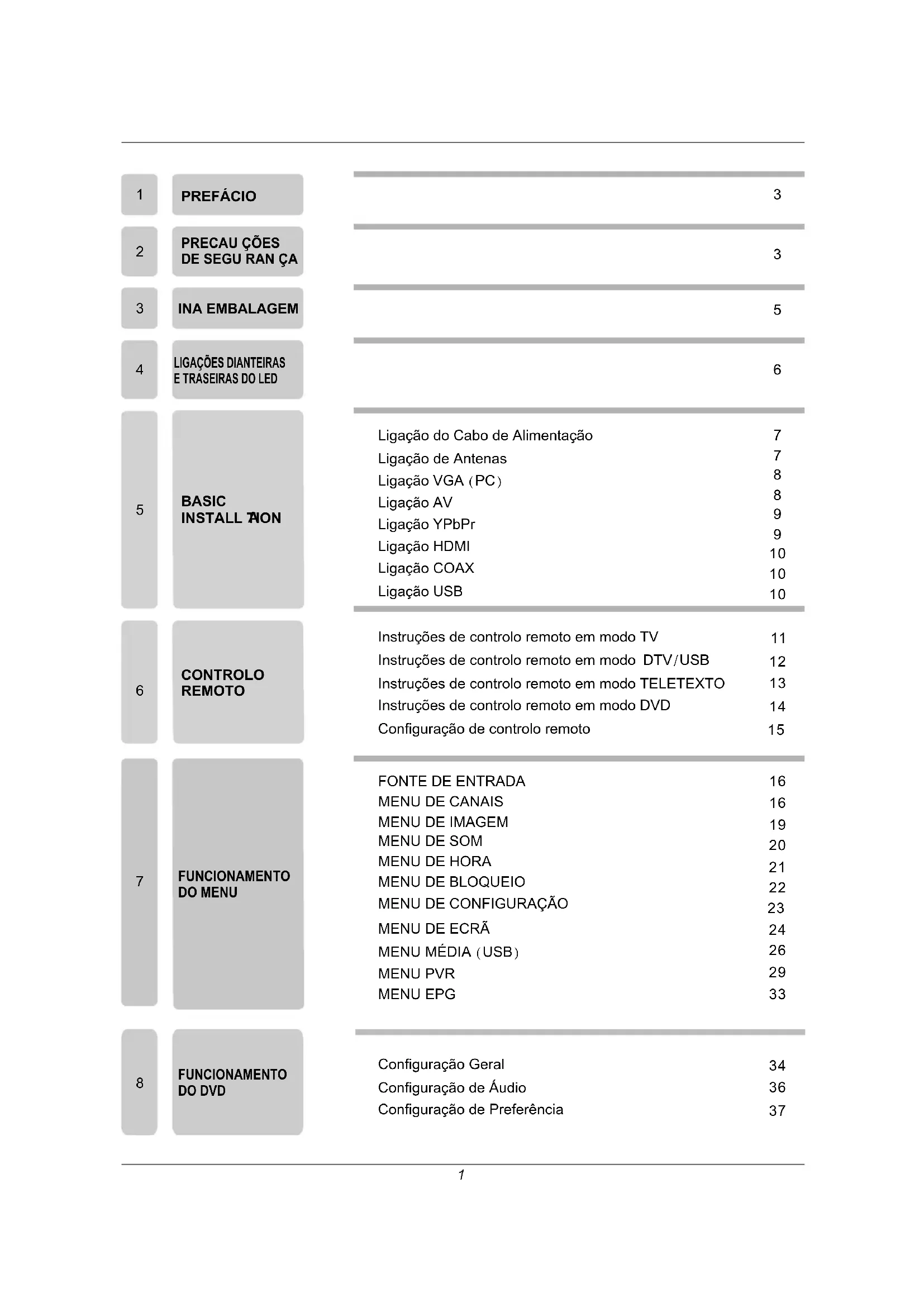 Instruções de controlo remoto em modo TV Instruções de controlo remoto em modo DTV/USB Instruções de controlo remoto em modo TELETEXTO Instruções de controlo remoto em modo DVD Configuração de controlo remoto