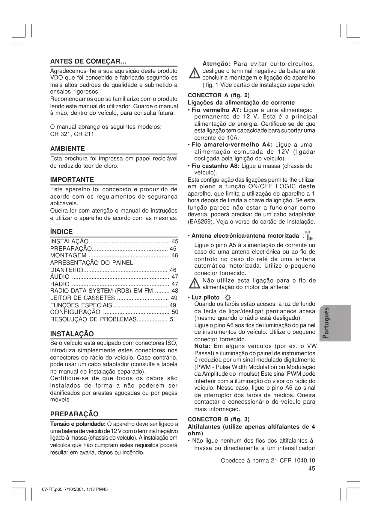 Agradecemos-lhe a sua aquisição deste produto VDO que foi concebido e fabricado segundo os mais altos padrões de qualidade e submetido a ensaios rigorosos.