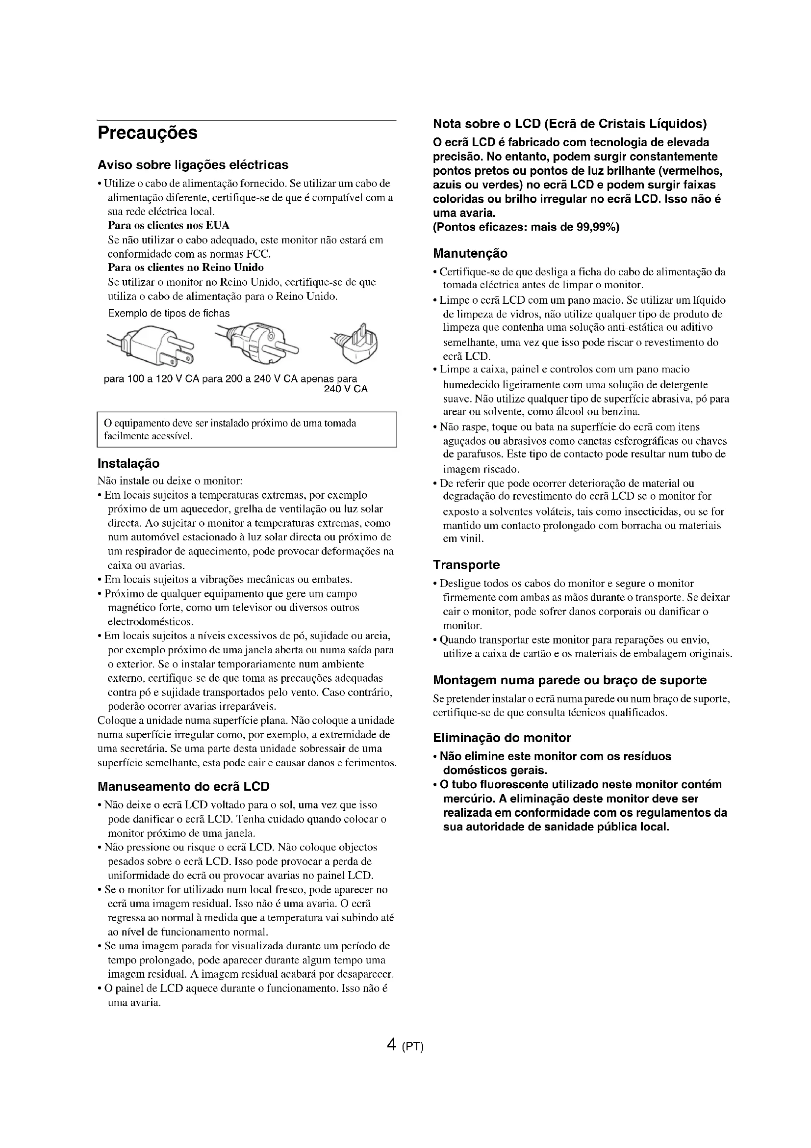 - Não elimine este monitor com os resíduos domésticos gerais.