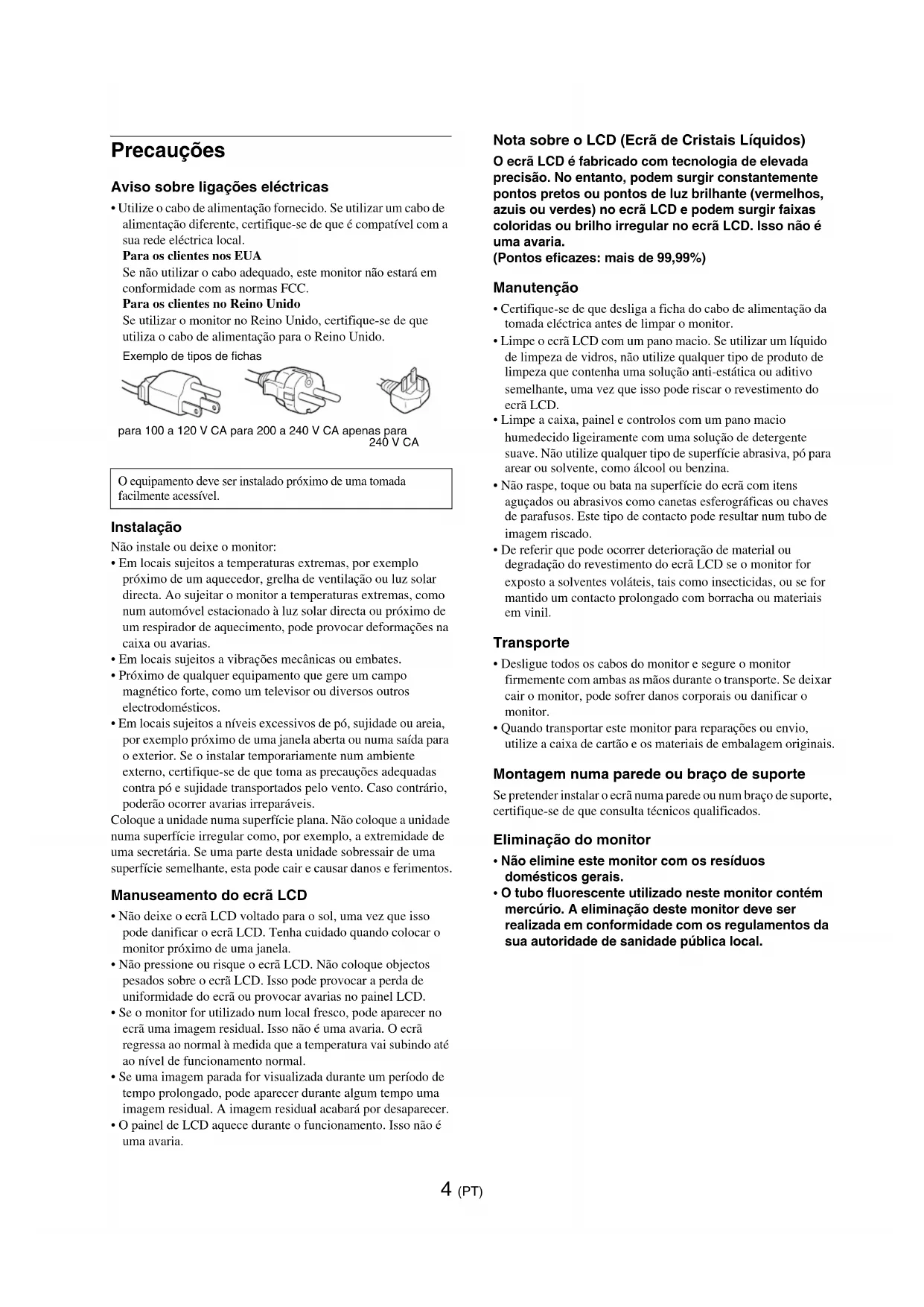 - Não elimine este monitor com os resíduos domésticos gerais.