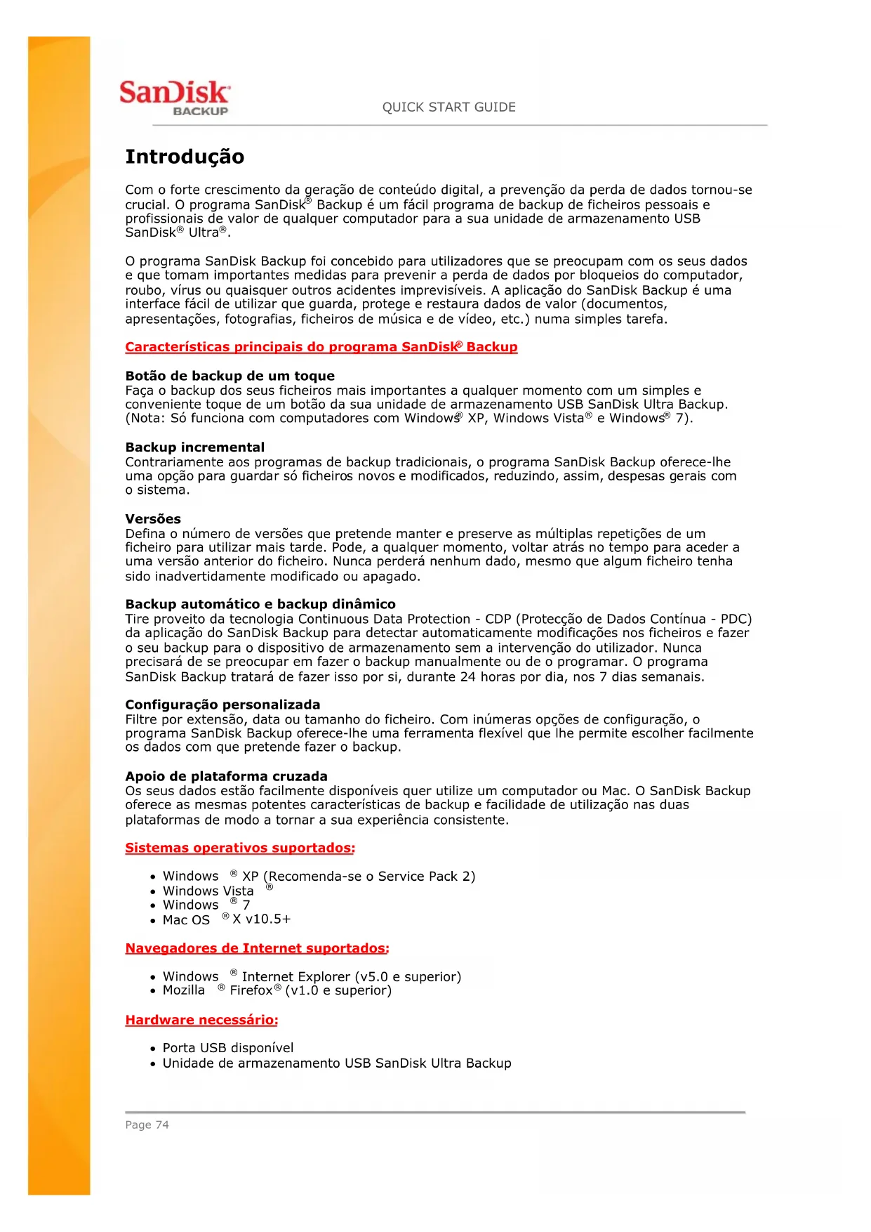 (v1.0 e superior) Hardware necessário: Porta USB disponível Unidade de armazenamento USB SanDisk Ultra BackupQUICK START GUIDE