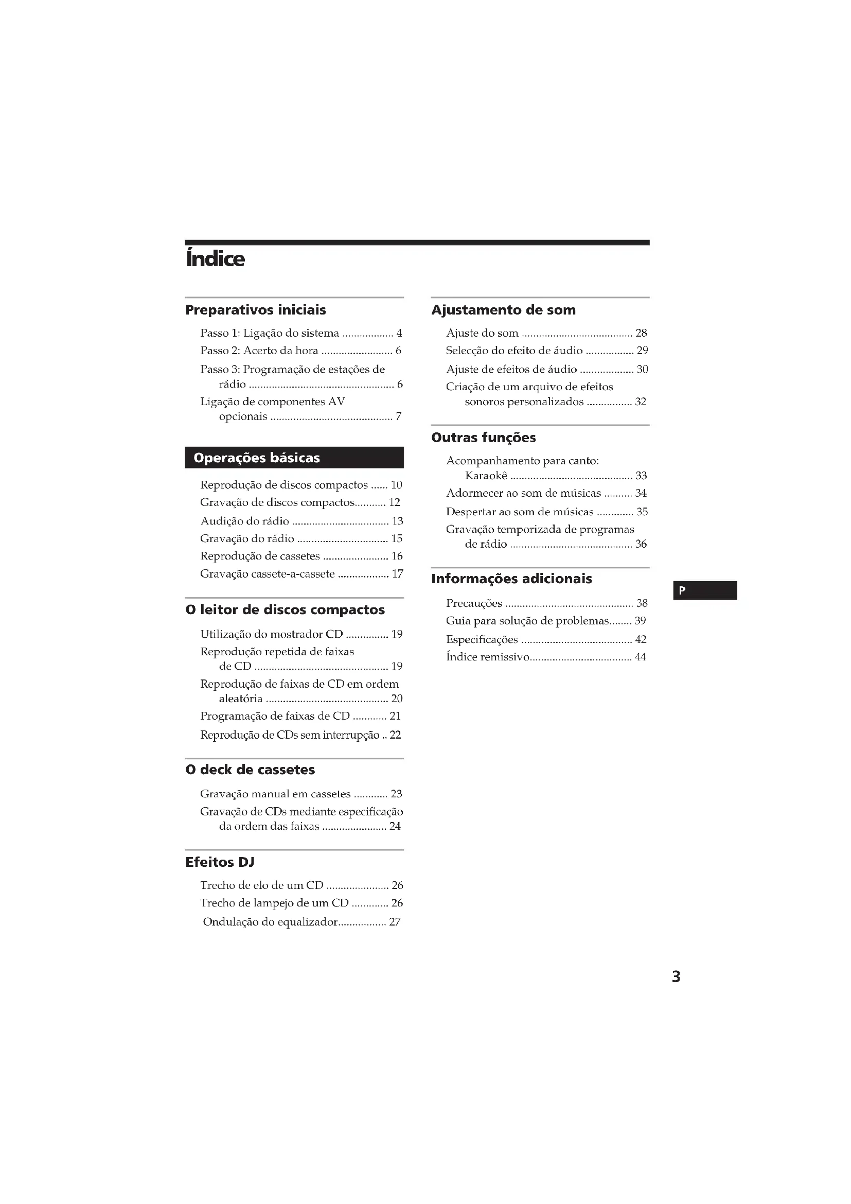 - Reprodução de faixas de CD em ordem aleatória p. 20