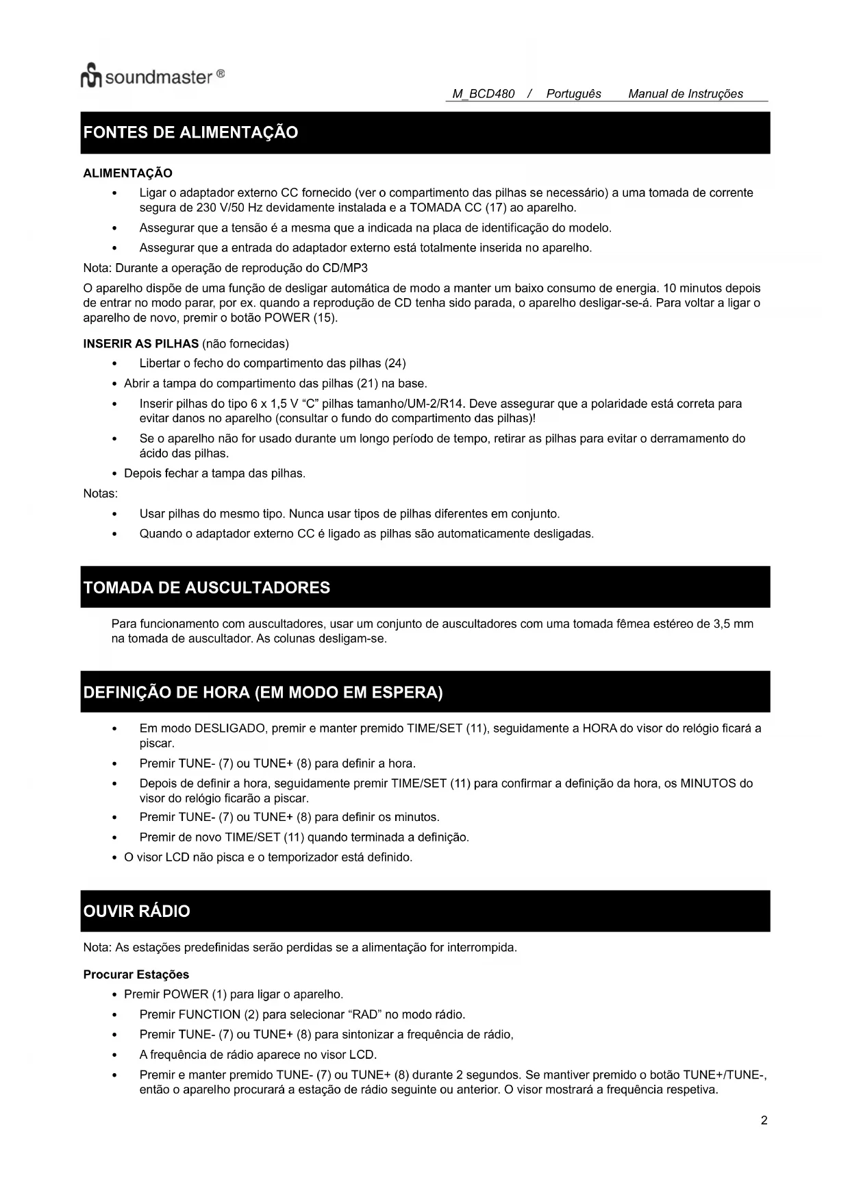 MANUAL DE UTILIZADOR BCD480 Soundmaster