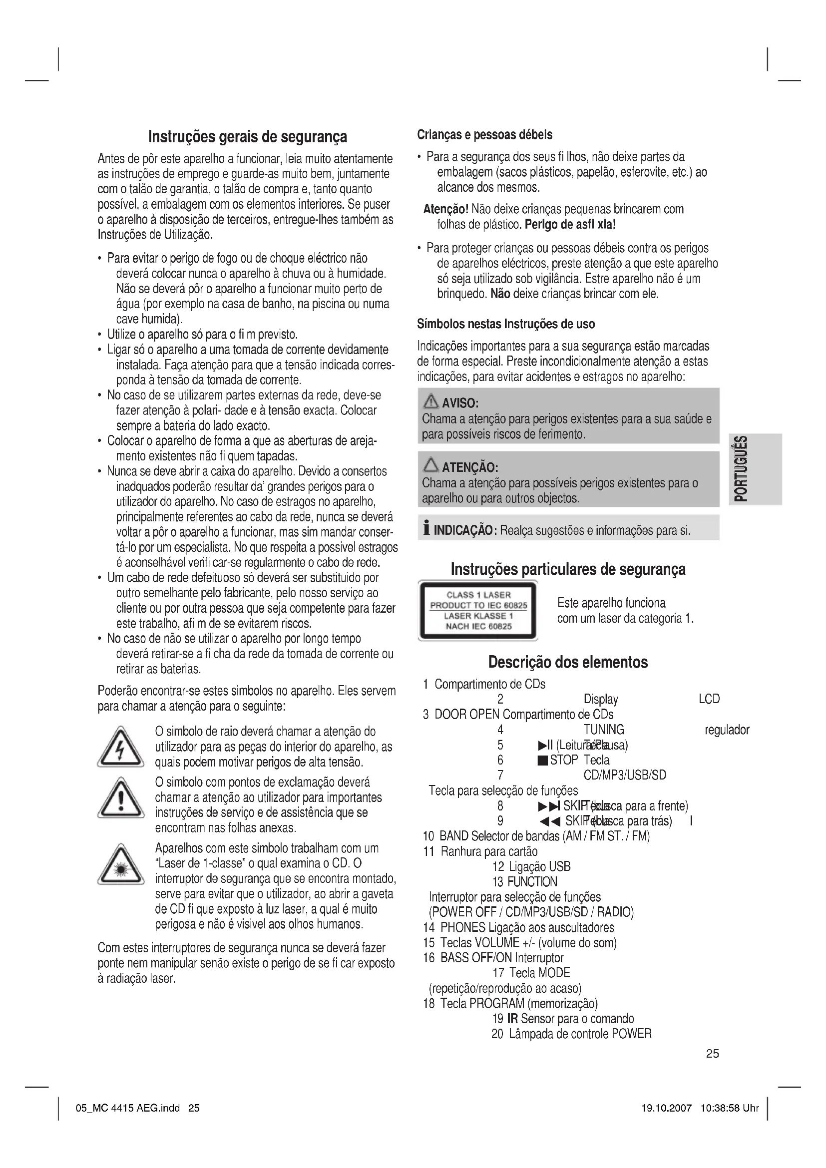 - Não é garantida a leitura de CD gravado pelo usuário por meio dos muitos meios de software e dos meios de CD disponíveis. 05_MC 4415 AEG.indd 2705_MC 4415 AEG.indd 27 19.10.2007 10:38:59 Uhr19.10.2007 10:38:59 Uhr28 PORTUGUÊS PORTUGUÊS Descrição das teclas CD