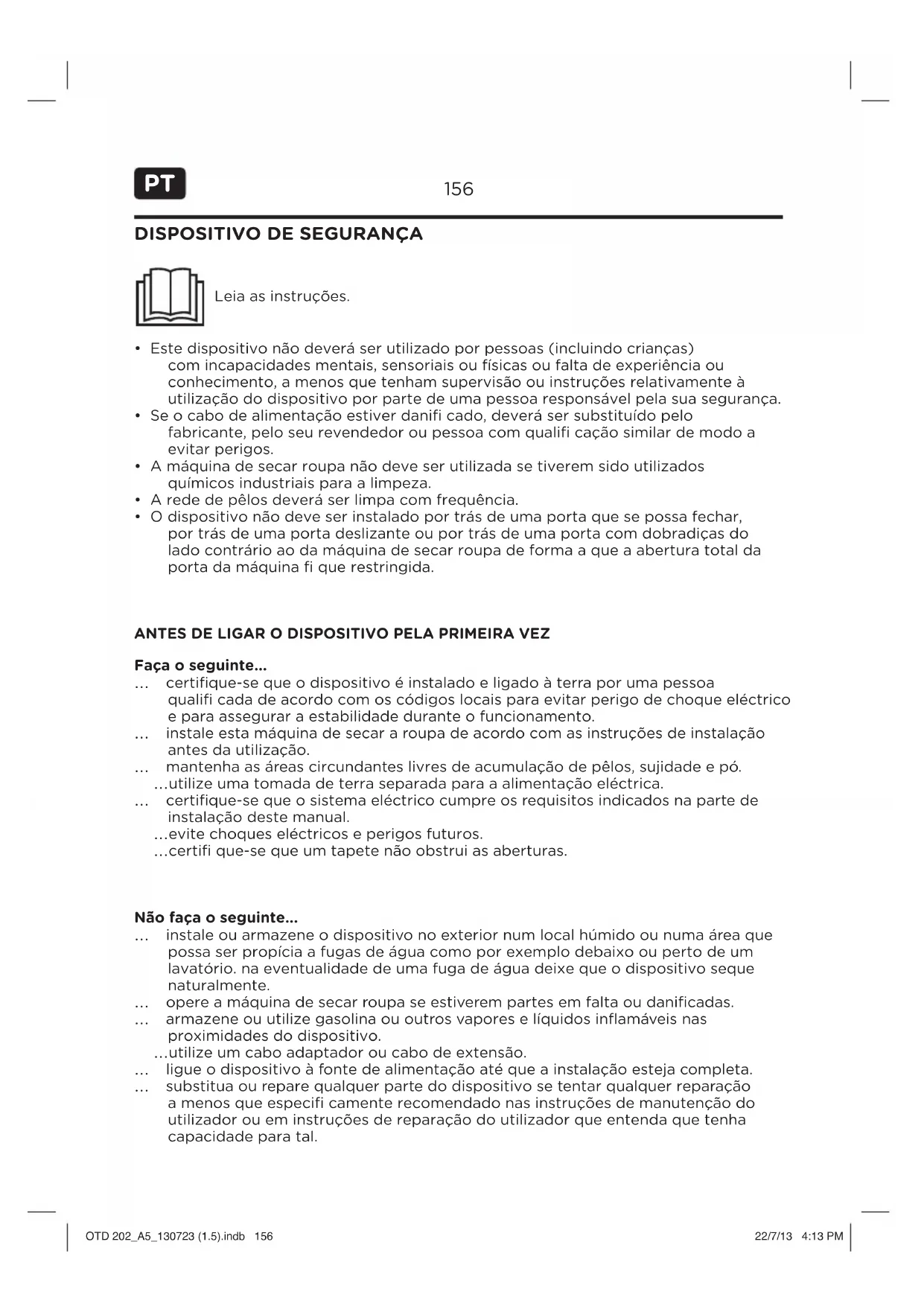 - A boaquina de secar devaraser mantida longe de substancias infl amaveis.