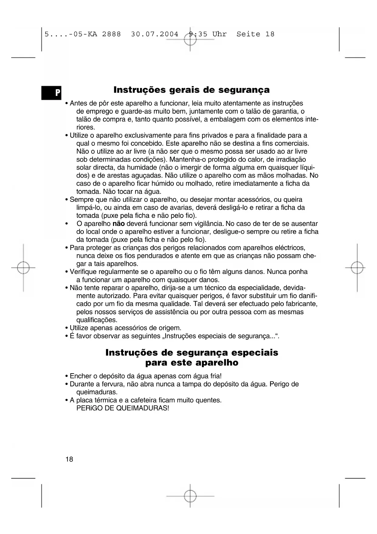 5....-05-KA 2888 30.07.2004 9:35 Uhr Seite 18Antes da primeira utilização