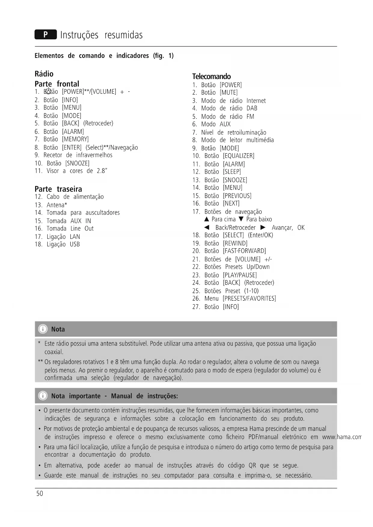 Encontre gratuitamente o manual do aparelho DIR3100 HAMA em formato PDF.
