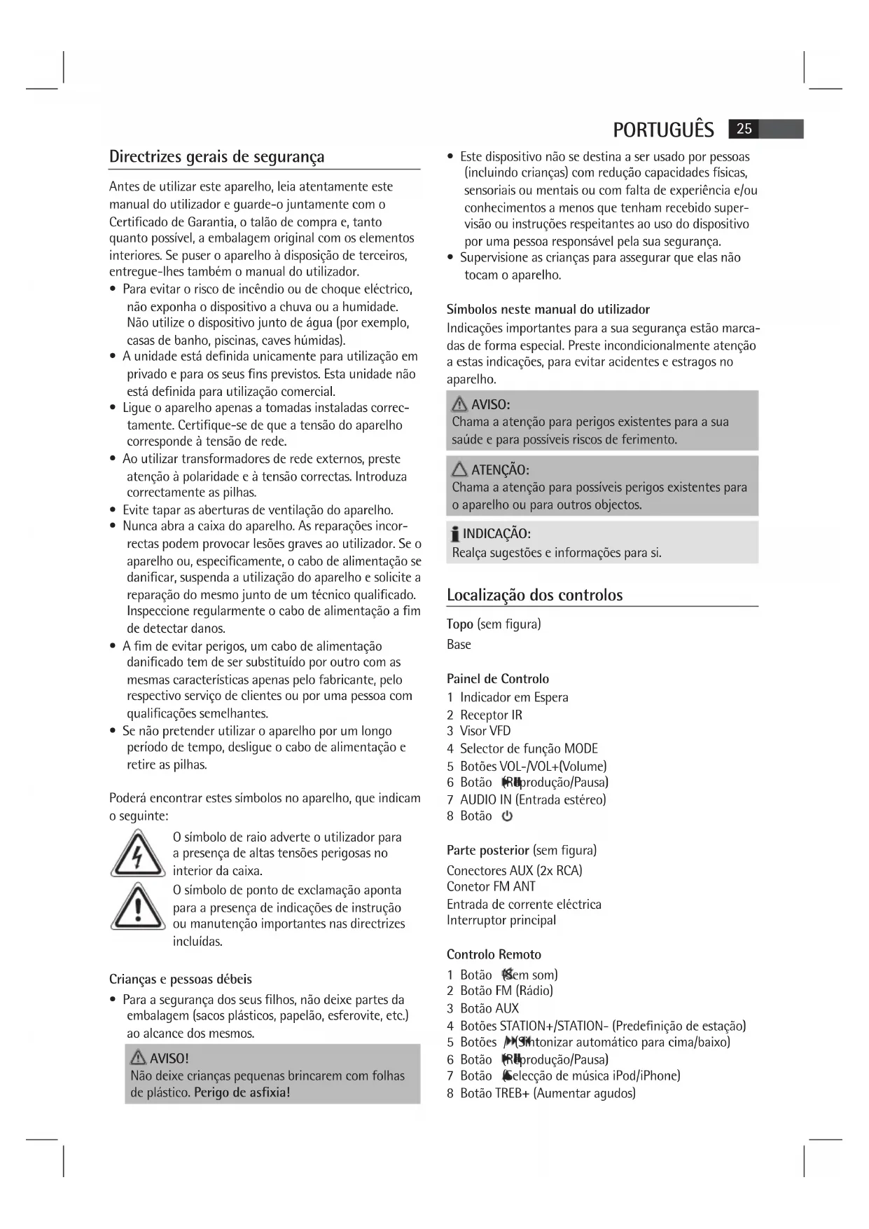- Não utilize o aparecido no volume máximo. Isto pode provocar danos.