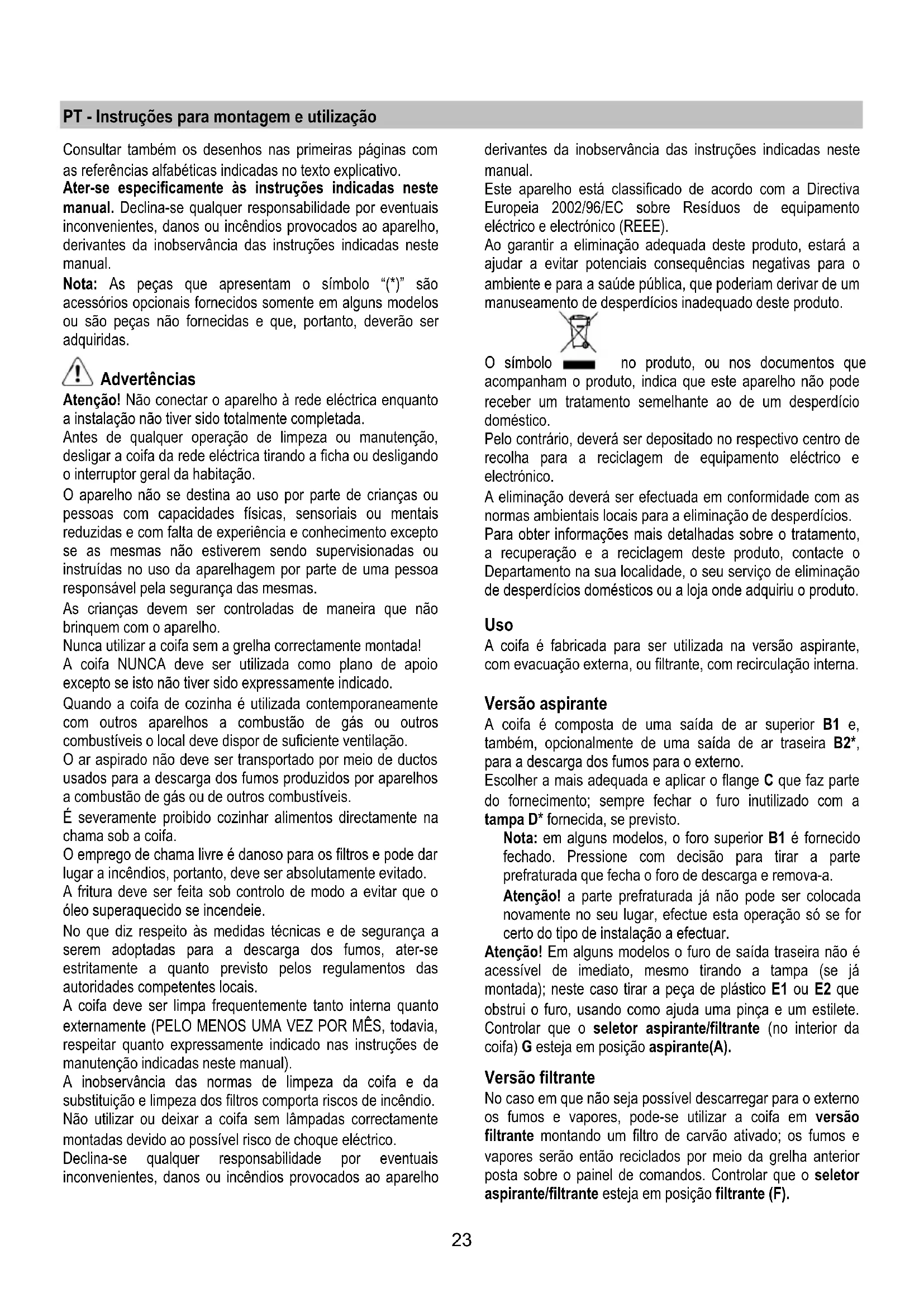 DU 6111 E - Exaustor de cozinha SIBIR - Manual de utilização gratuito