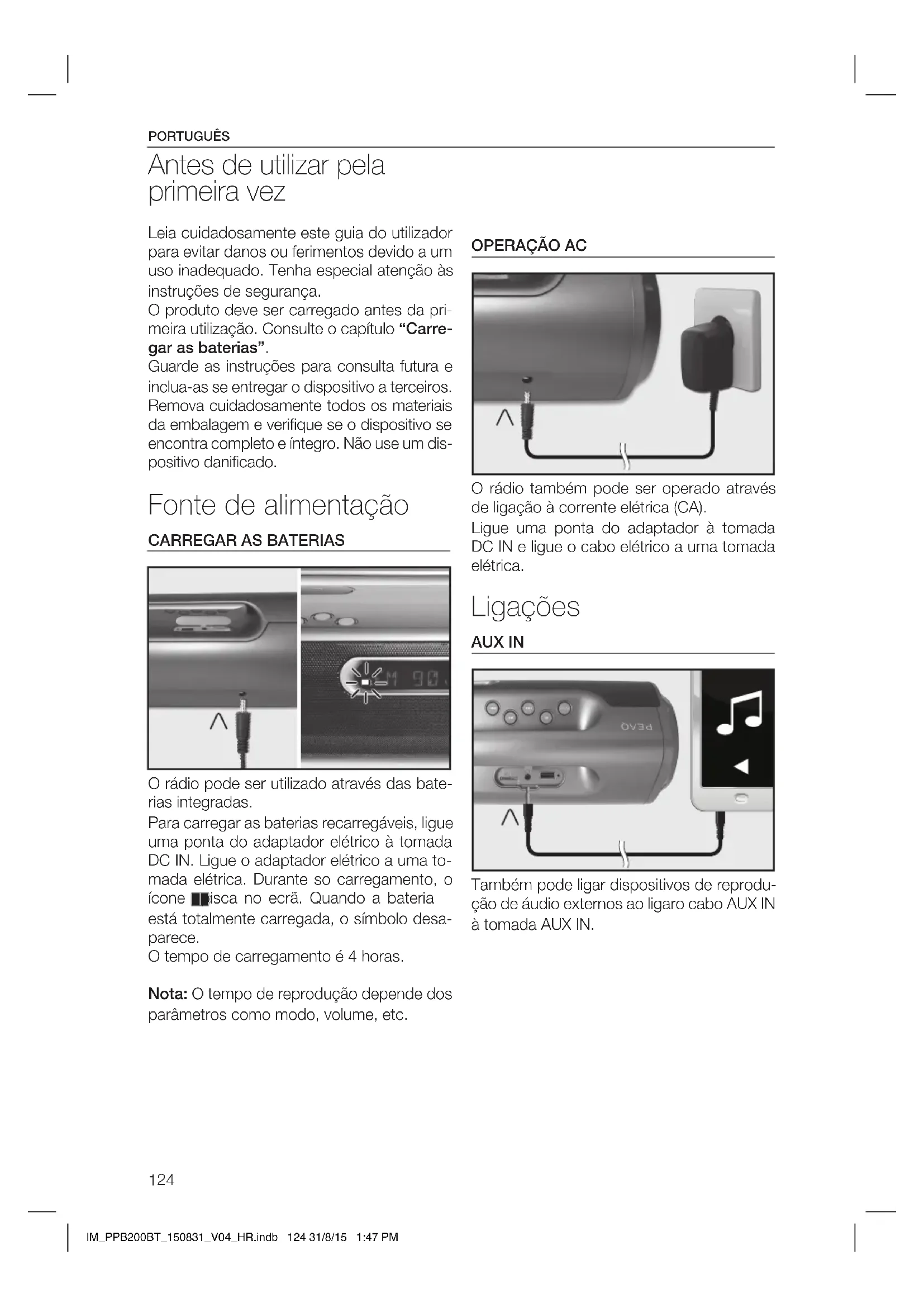 Antes de ligar a uma tomada, certifique-se de que a tensão indicada no produto cor- responde à da tomada da sua residência. IM_PPB200BT_150831_V04_HR.indb 121 31/8/15 1:47 PMPORTUGUÊS