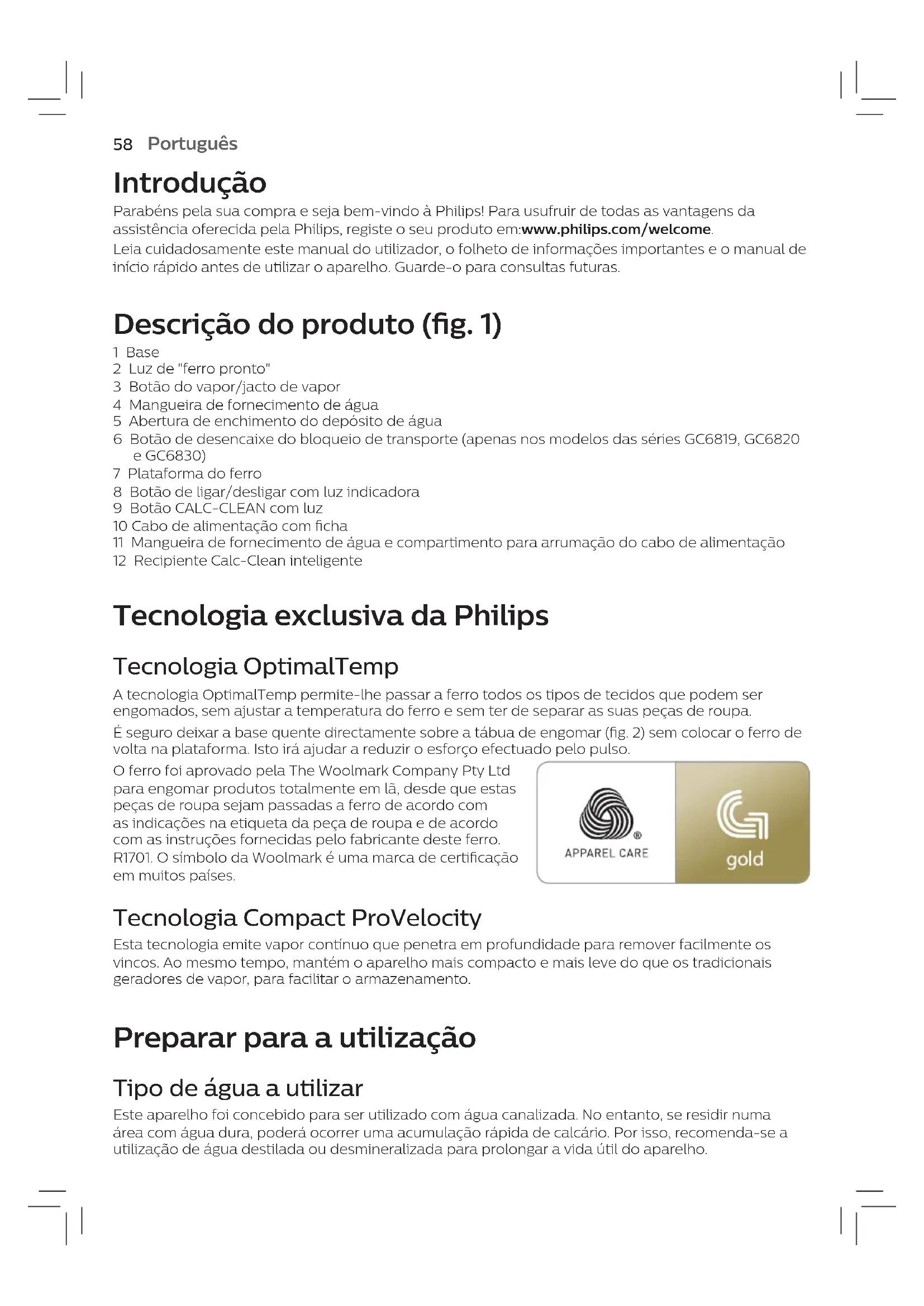 Baixe as instruções para o seu Ferro de passar em formato PDF gratuitamente! Encontre o seu manual PerfectCare Compact Essential GC6822 - PHILIPS e retome o controlo do seu dispositivo eletrónico. Nesta página estão publicados todos os documentos necessários para a utilização do seu dispositivo. PerfectCare Compact Essential GC6822 da marca PHILIPS.