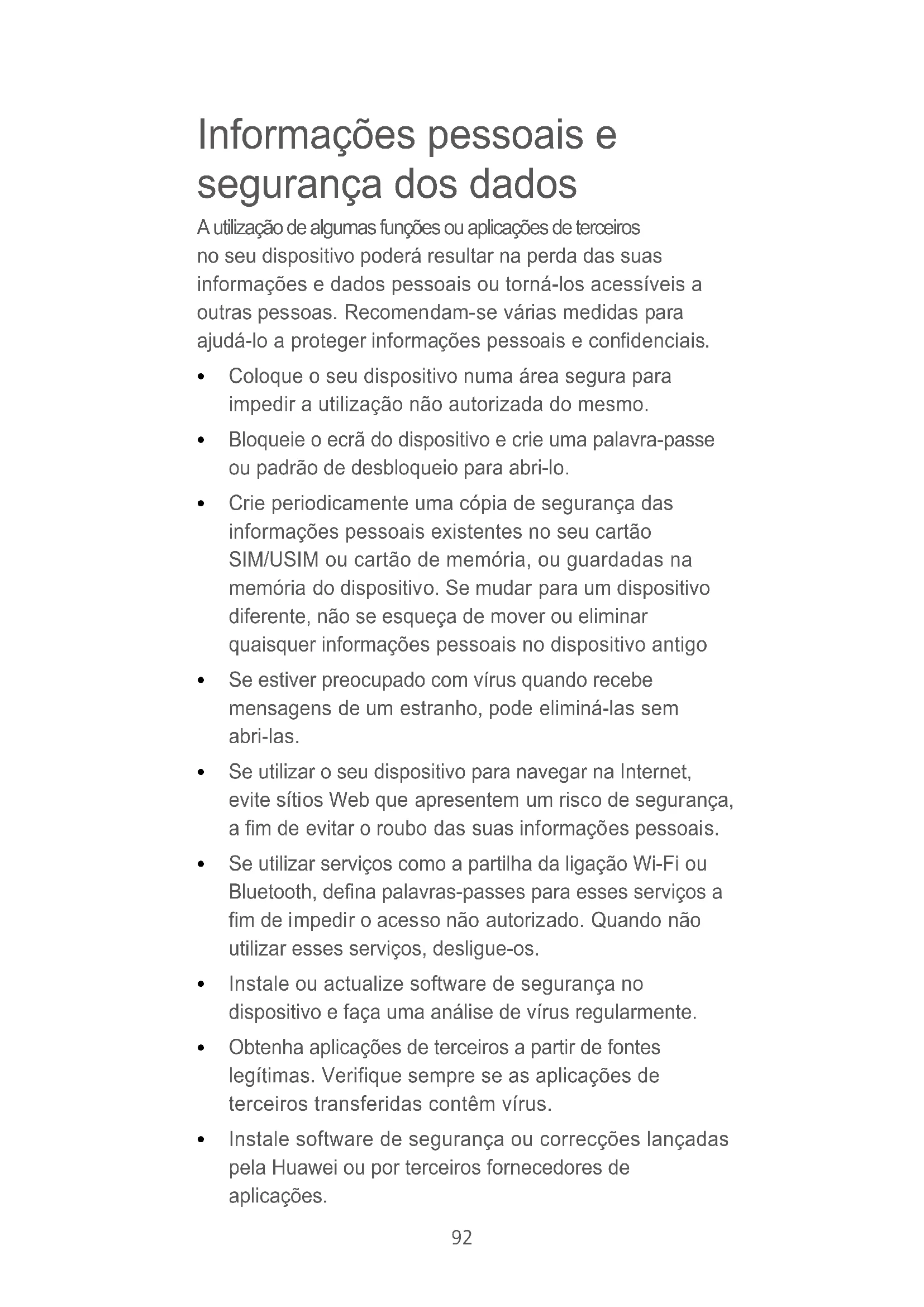 Instale!software!de!segurança!ou!correcções!lançadas! pela!Huawei!ou!por!terceiros!fornecedores!de! aplicações.!93
