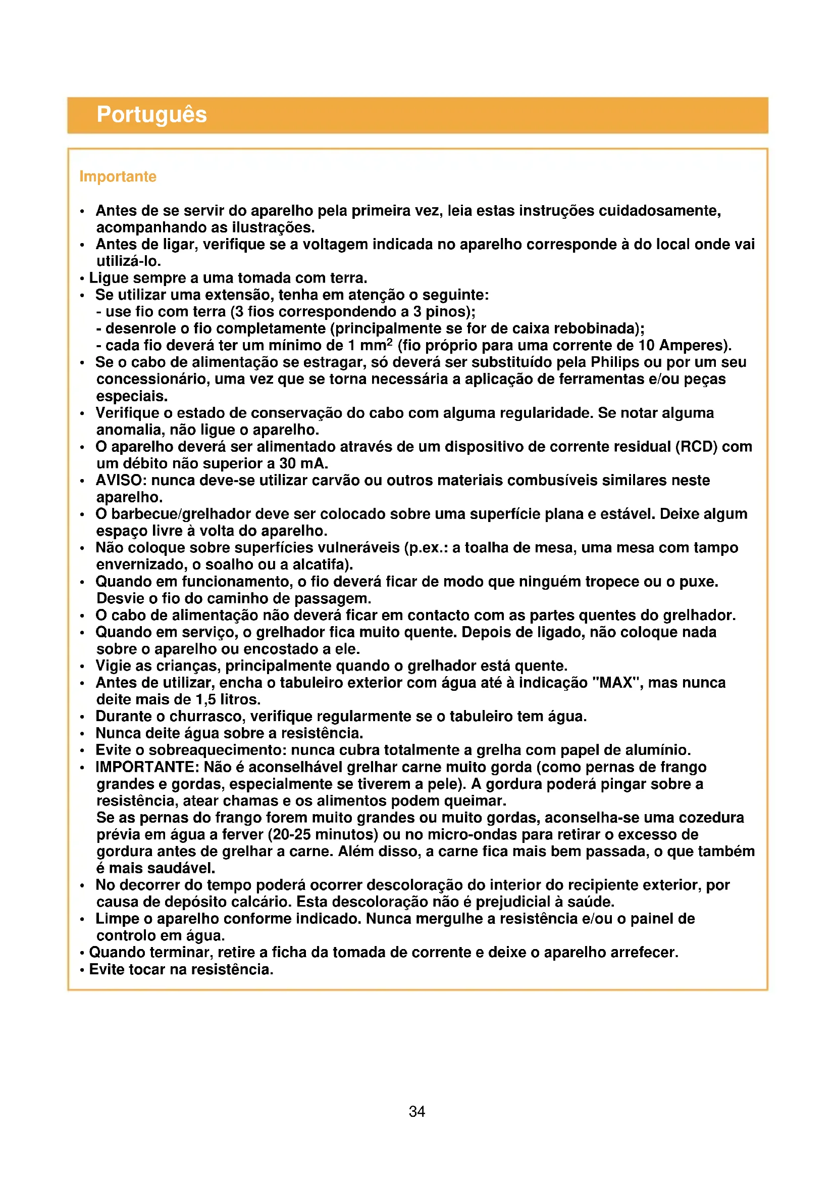 - Se o cabo de alimentação se estragar,soledehyde ser substituindo pela Philips ou por um seu concessionário,uma vez que se torna necessária a aplicacao de ferramentas e/ou peças especialis.