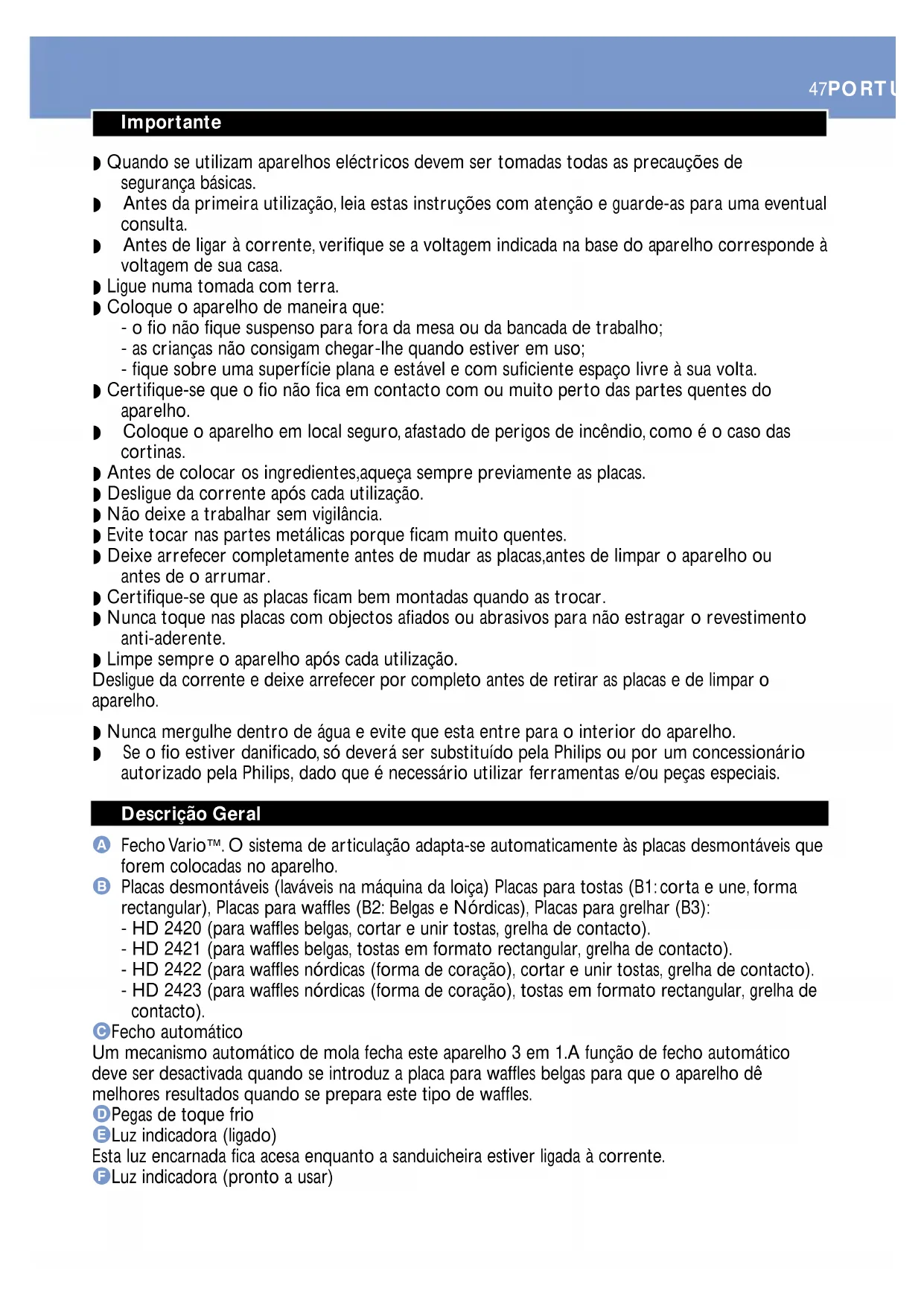 - HD 2420 (para waffles belgas,URTAR e unir tostas, grelha de contacto).