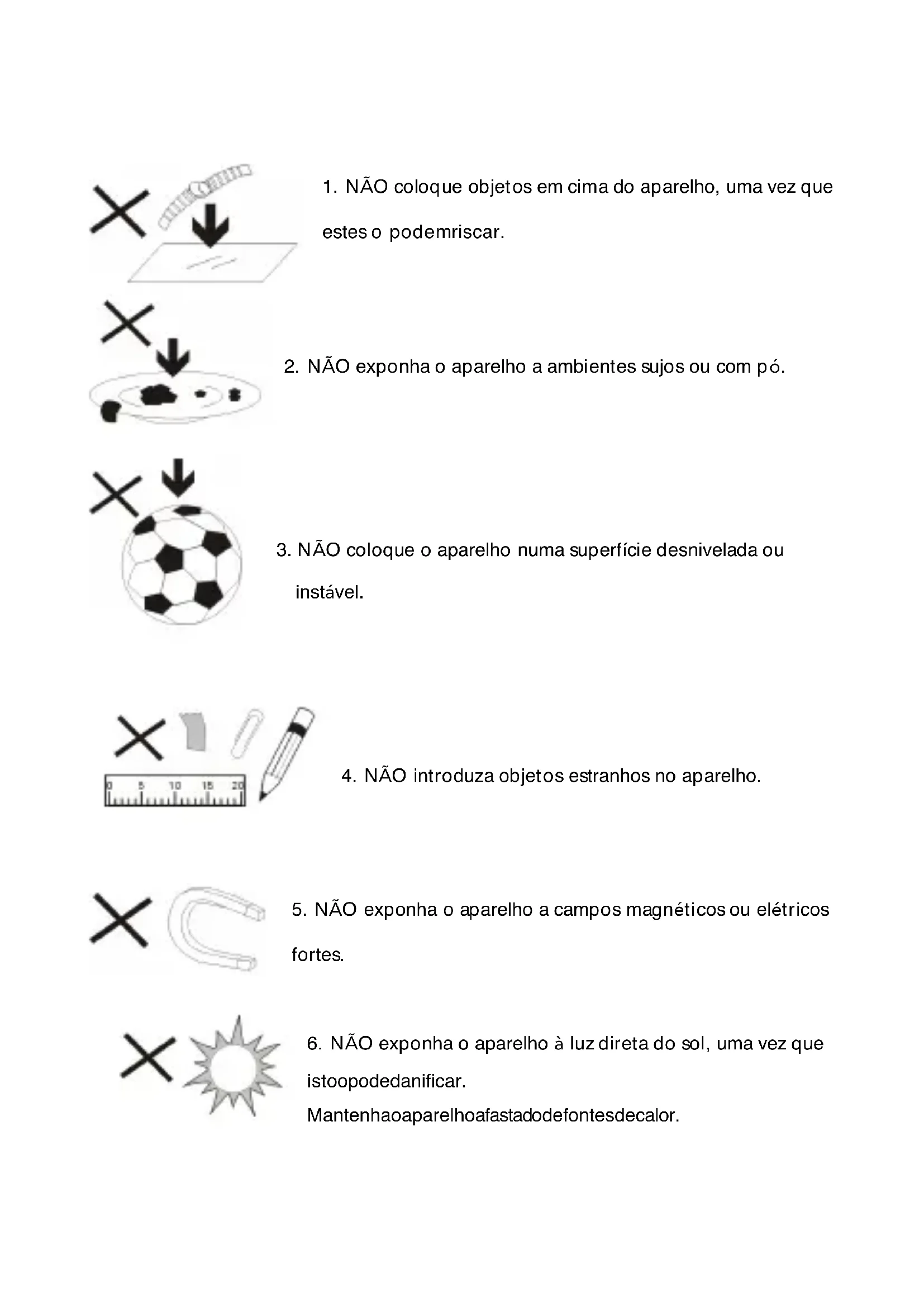 NÃO bloqueie a ventilação do aparelho, uma vez que este pode aquecer e avariar-se.