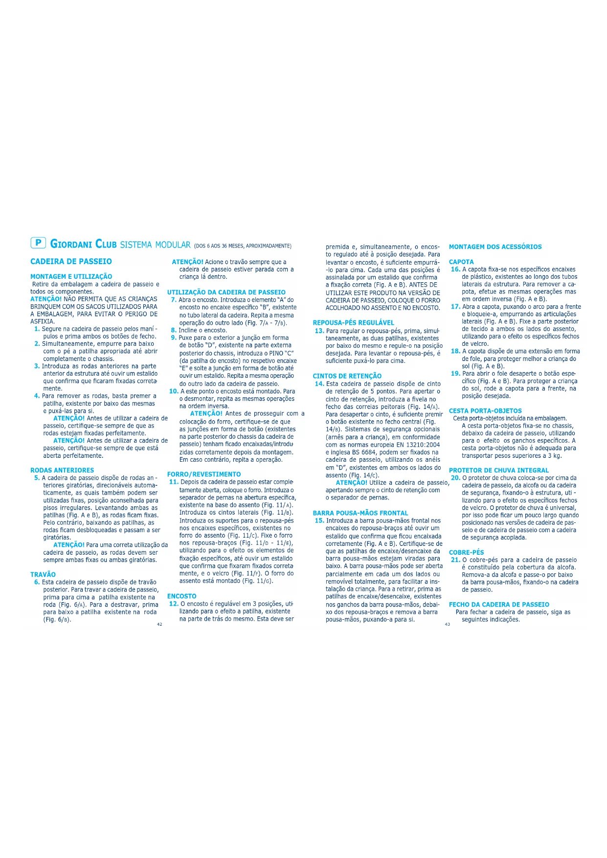 Club - Carrinho de bebê Giordani - Manual de utilização gratuito