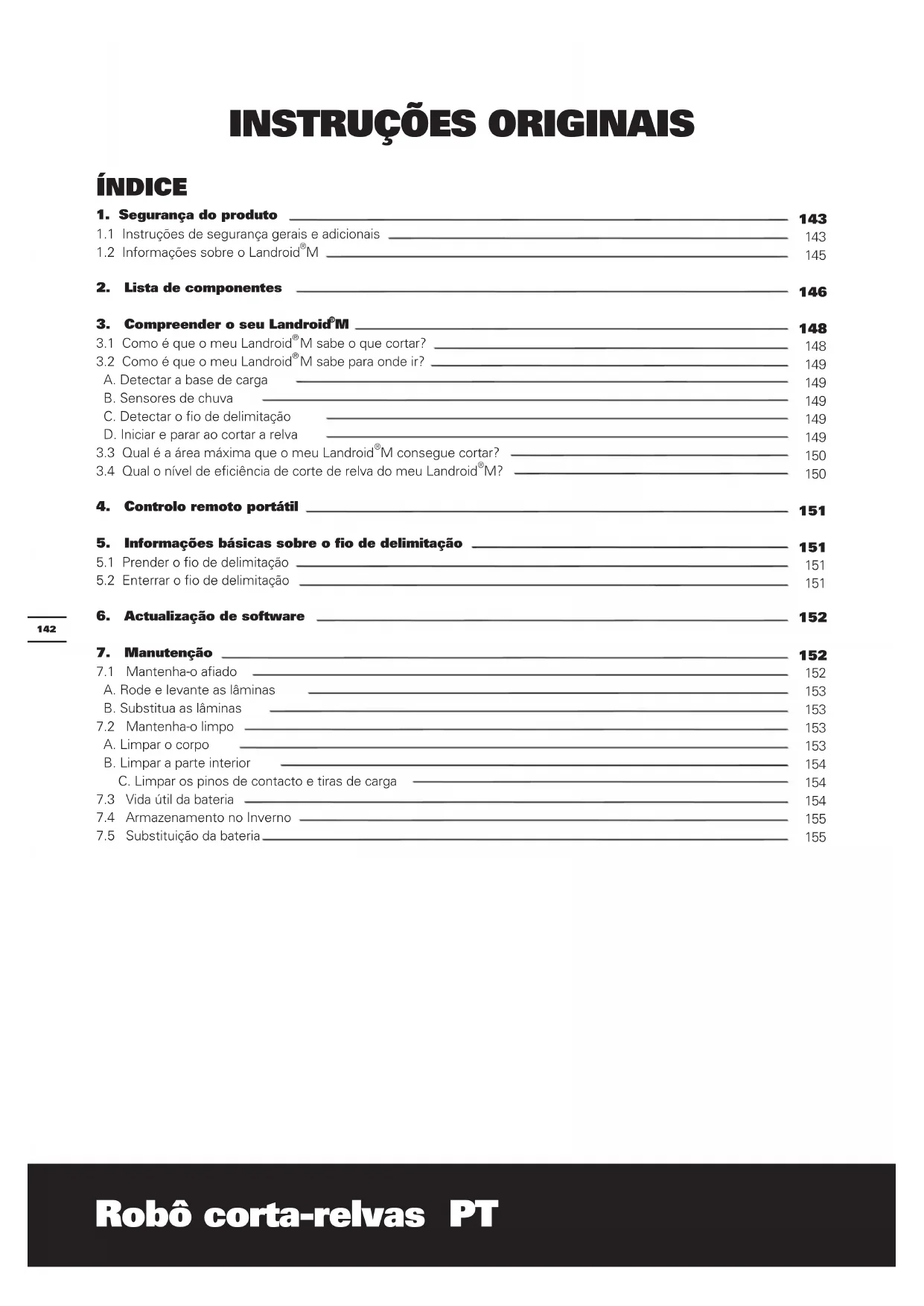- Manutenção da bateria durante o armazenamento O Landroid