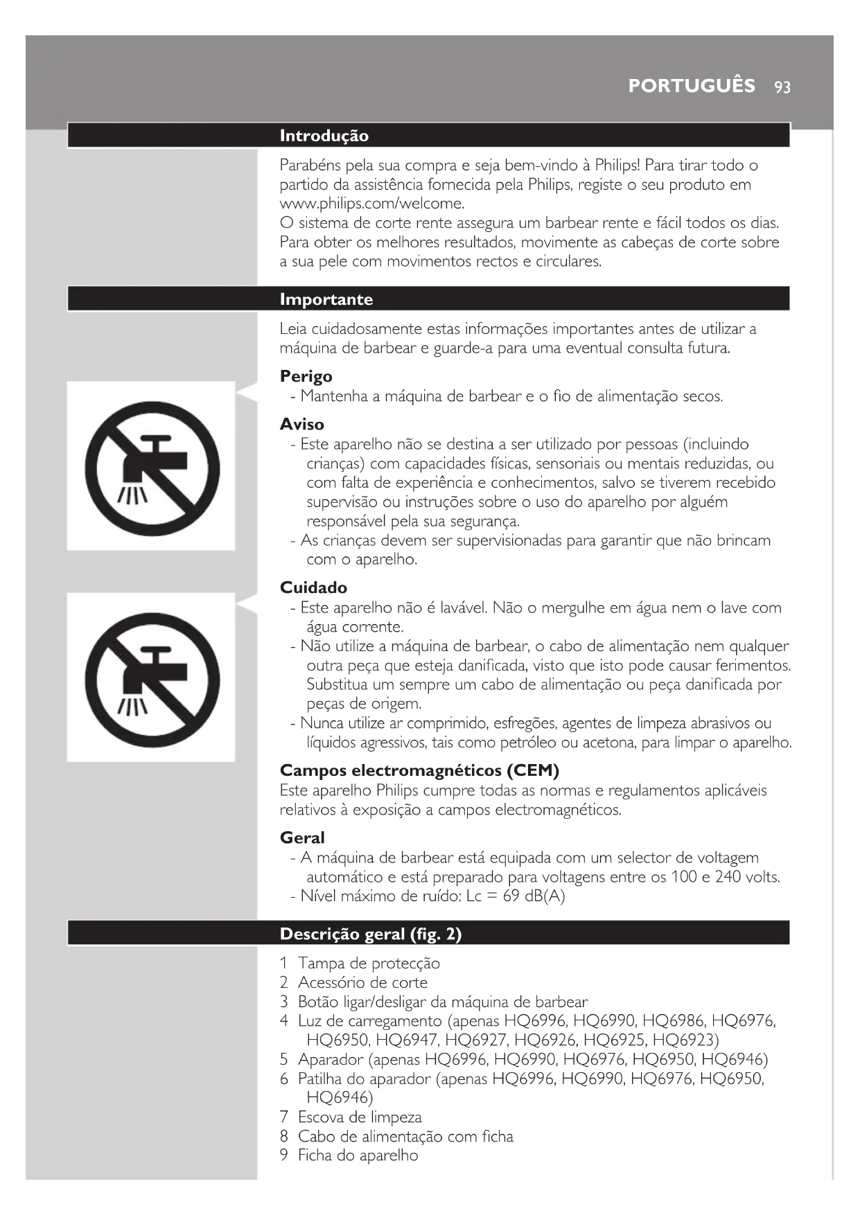 HQ6997 - Barbeador PHILIPS - Manual de utilização gratuito