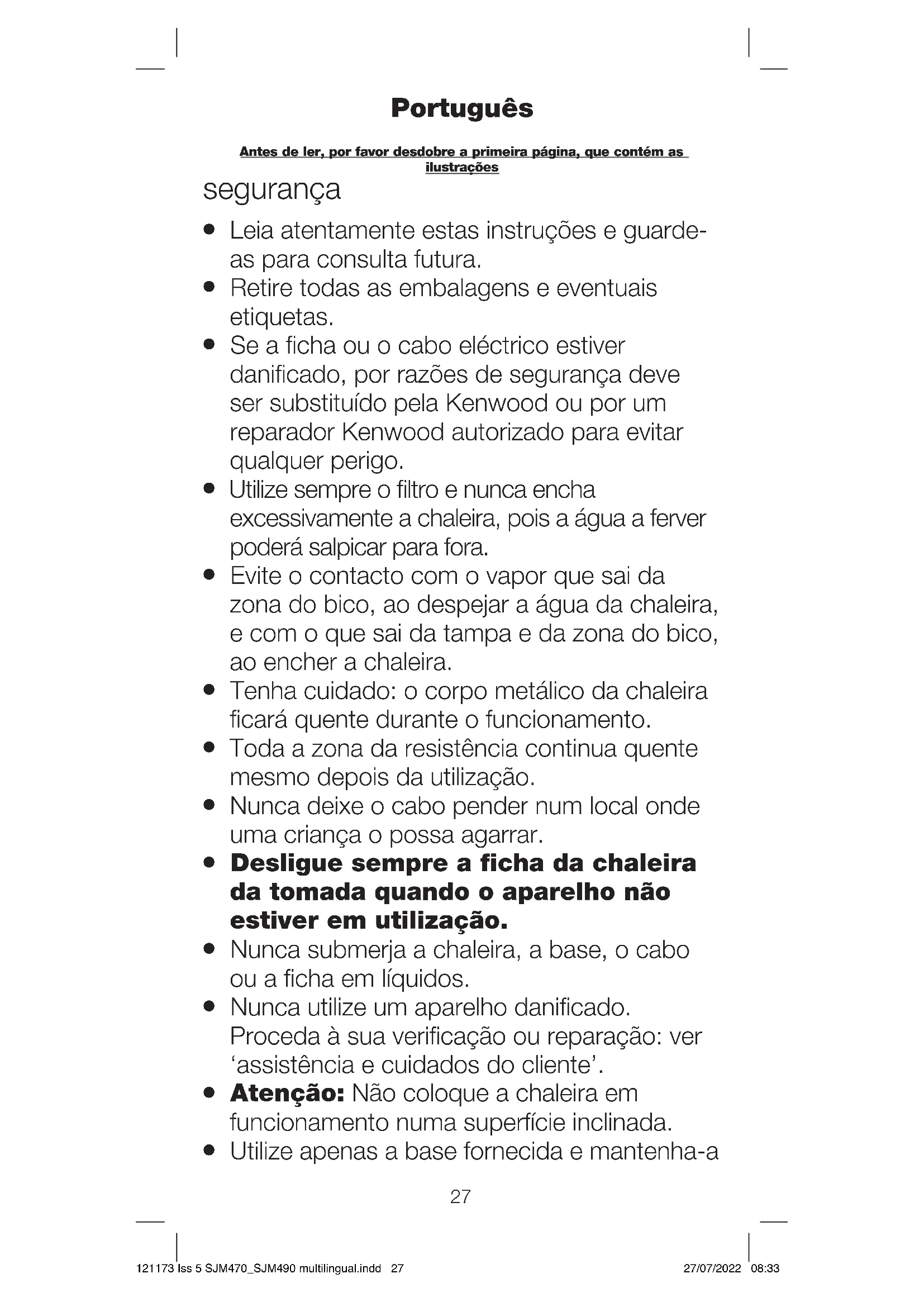 Utilize apenas a base fornecida e mantenha-a Português Antes de ler, por favor desdobre a primeira página, que contém as ilustrações 121173 Iss 5 SJM470_SJM490 multilingual.indd 27121173 Iss 5 SJM470_SJM490 multilingual.indd 27 27/07/2022 08:3327/07/2022 08:3328 limpa e seca.