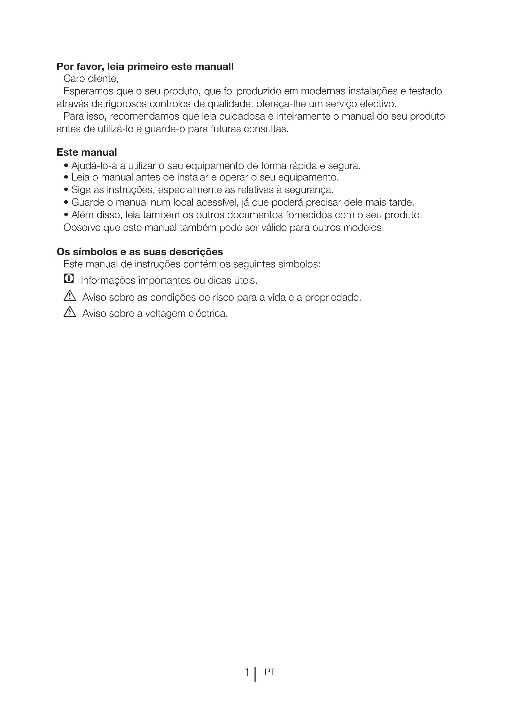 Por favor, leia primeiro este manual! Caro cliente, Esperamos que o seu produto, que foi produzido em modernas instalações e testado através de rigorosos controlos de qualidade, ofereça-lhe um serviço efectivo. Para isso, recomendamos que leia cuidadosa e inteiramente o manual do seu produto antes de utilizá-lo e guarde-o para futuras consultas. Este manual