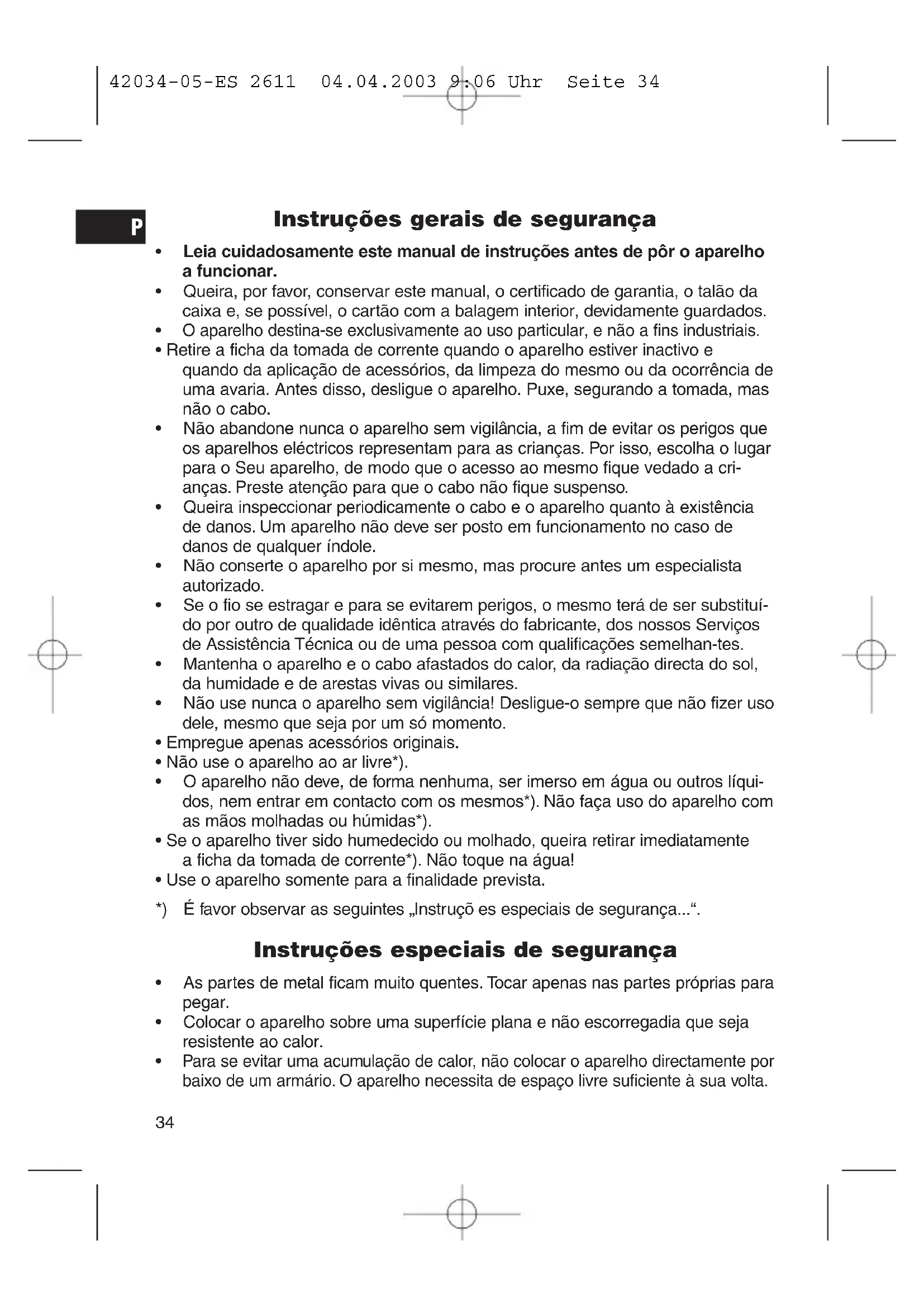 - Use o aparelho somente para a finalidade prevista. *) É favor observar as seguintes „Instruçõ es especiais de segurança...“. Instruções especiais de segurança