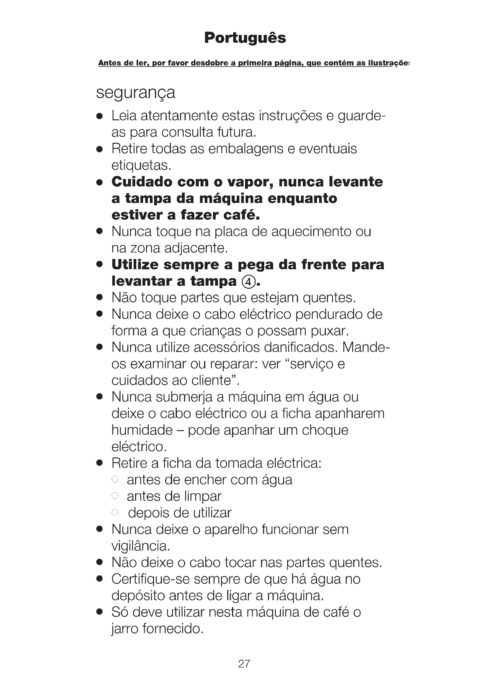Só deve utilizar nesta máquina de café o jarro fornecido.28