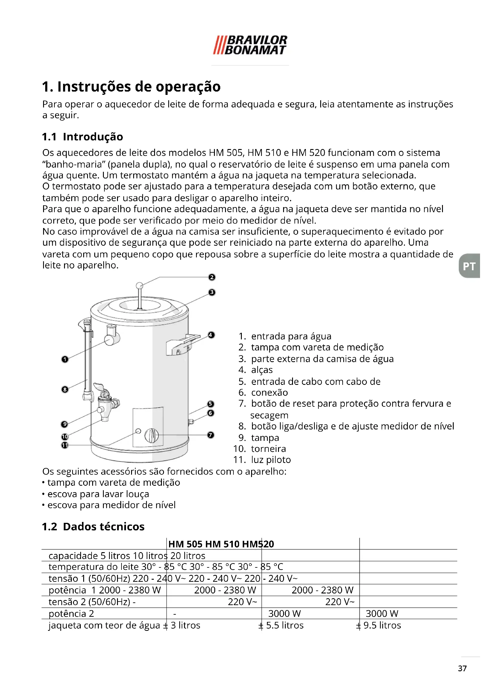Encontre gratuitamente o manual do aparelho HM510 Bravilor Bonamat em formato PDF.