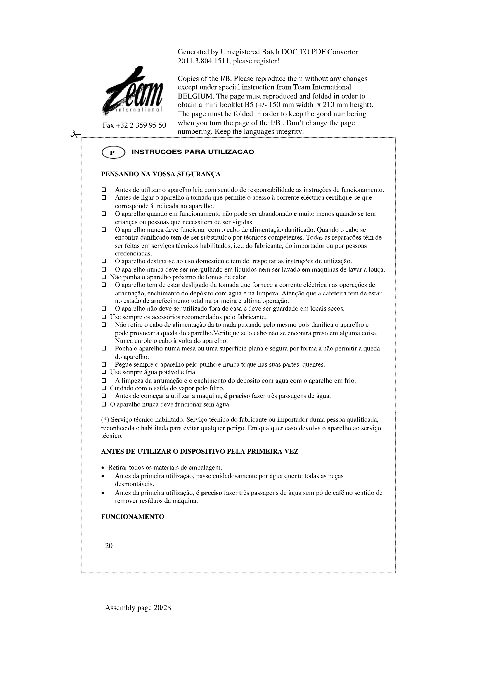 EXP 3 - Máquina de café TEAM - Manual de utilização gratuito