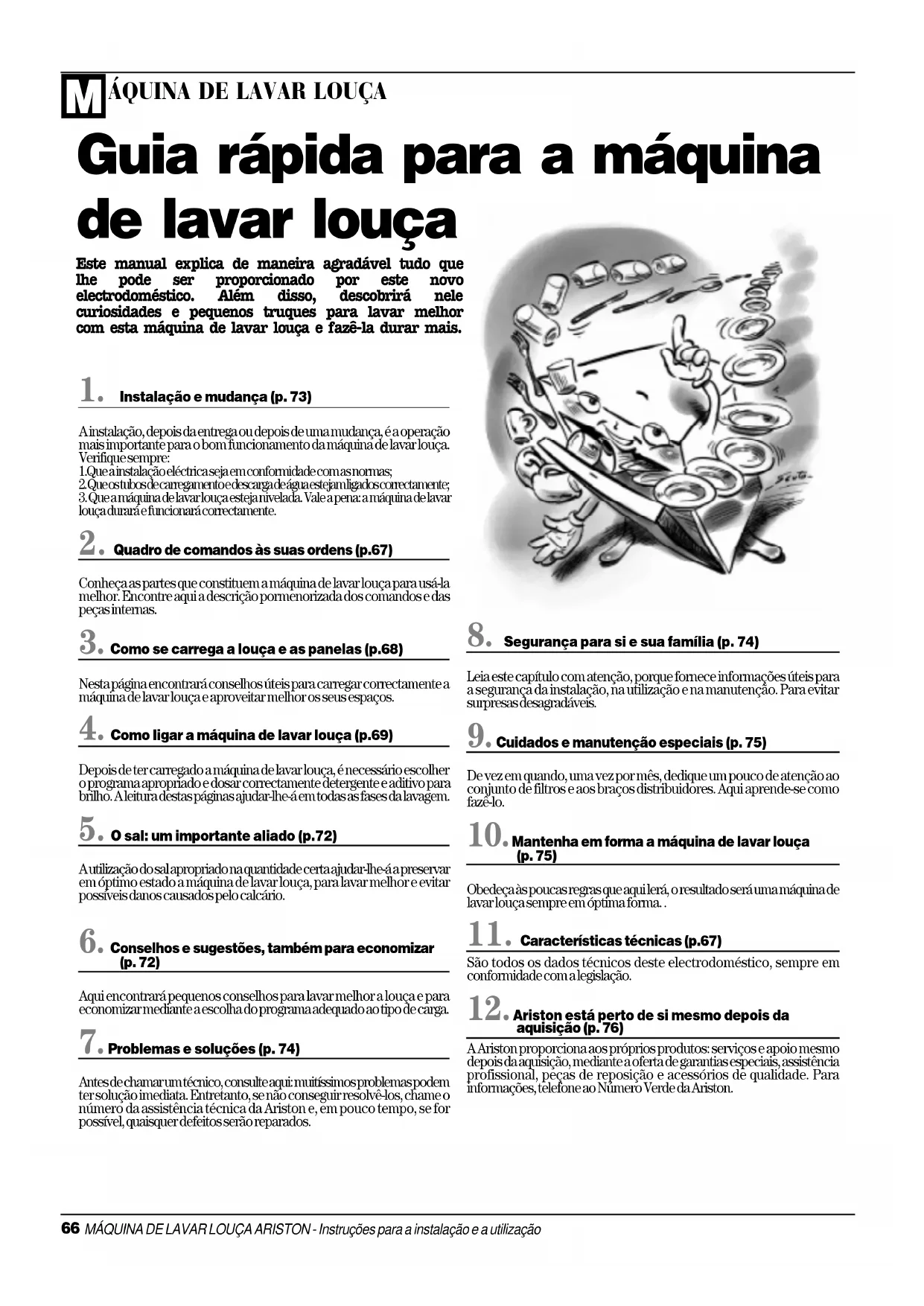 (p. 75)Obedeça às poucas regras que aqui lerá, o resultado será uma máquina delavar louça sempre em óptima forma. .