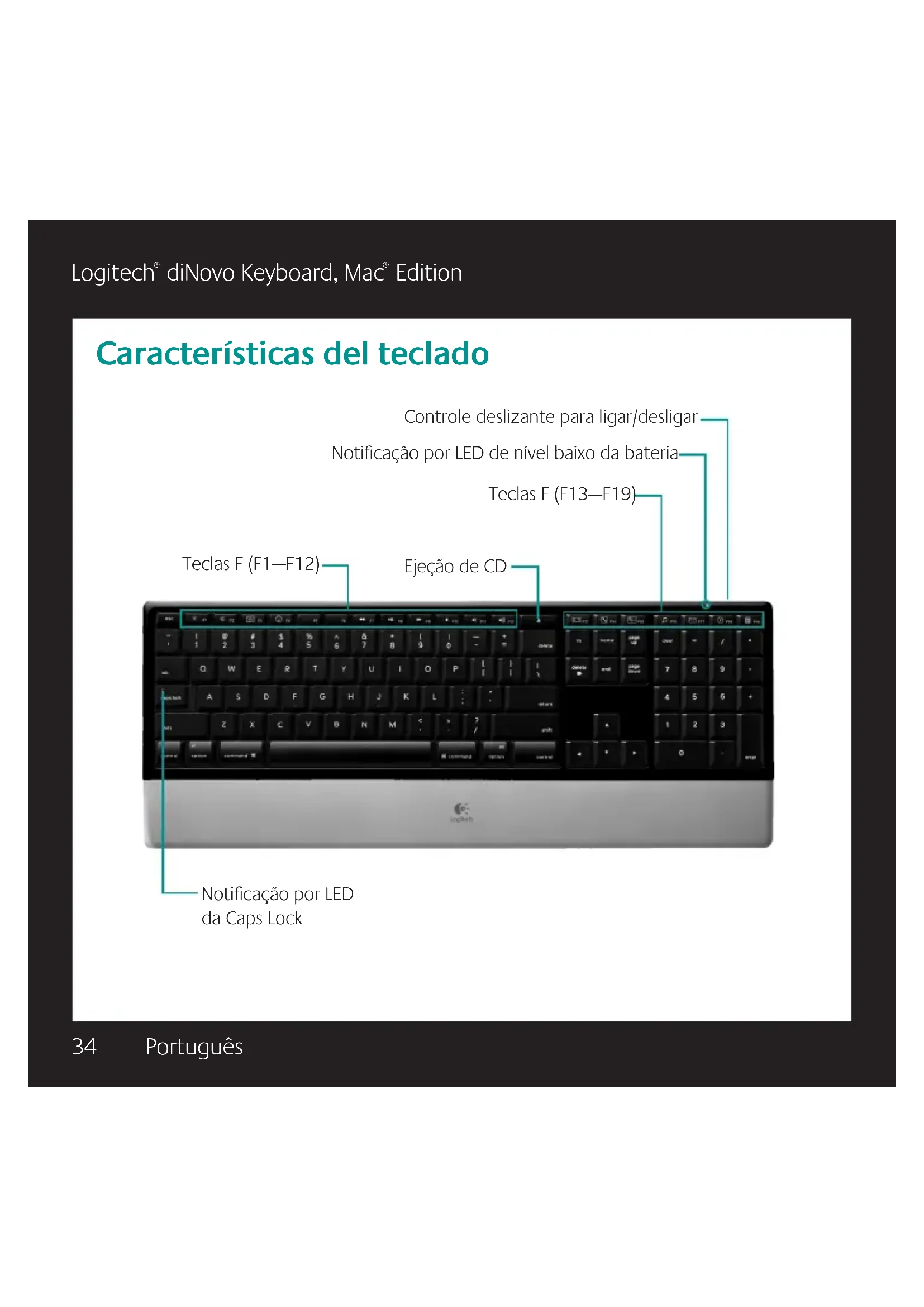 Encontre gratuitamente o manual do aparelho diNovo Keyboard Mac edition LOGITECH em formato PDF.
