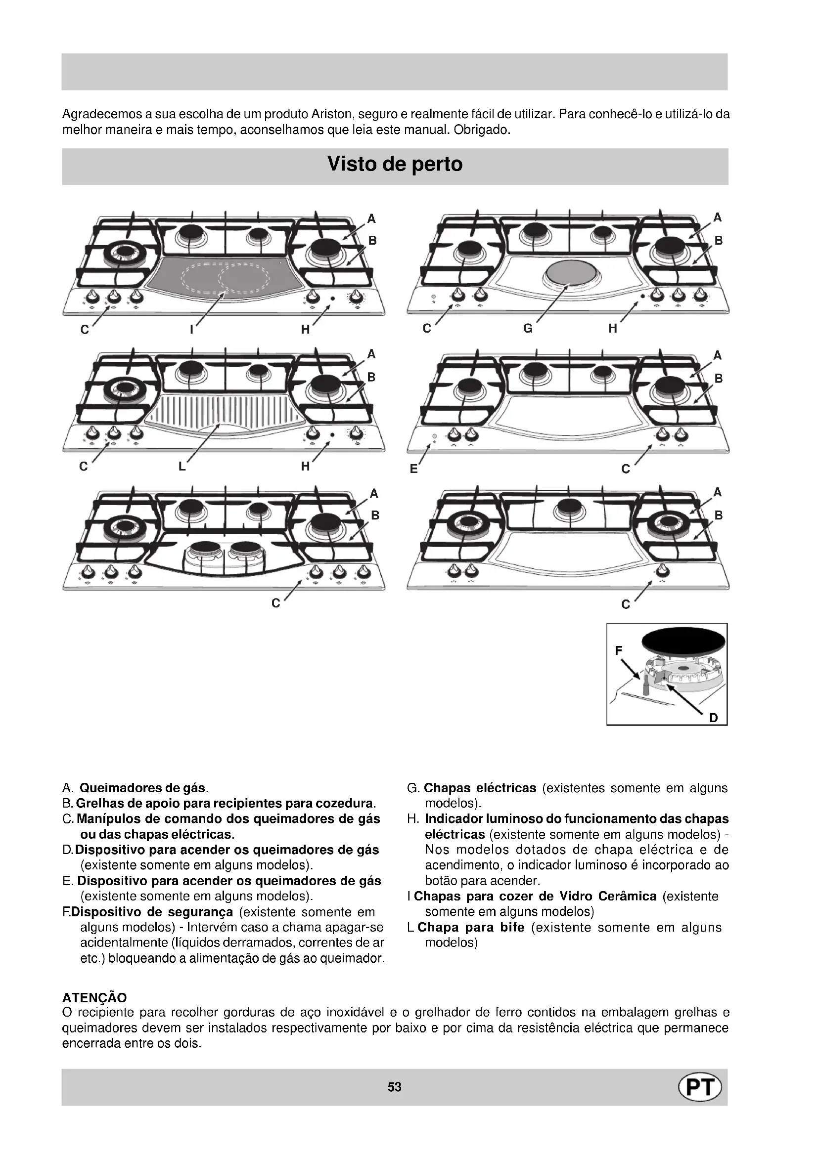 PH 960 MST GH - Fogão Ariston Thermo - Manual de utilização gratuito