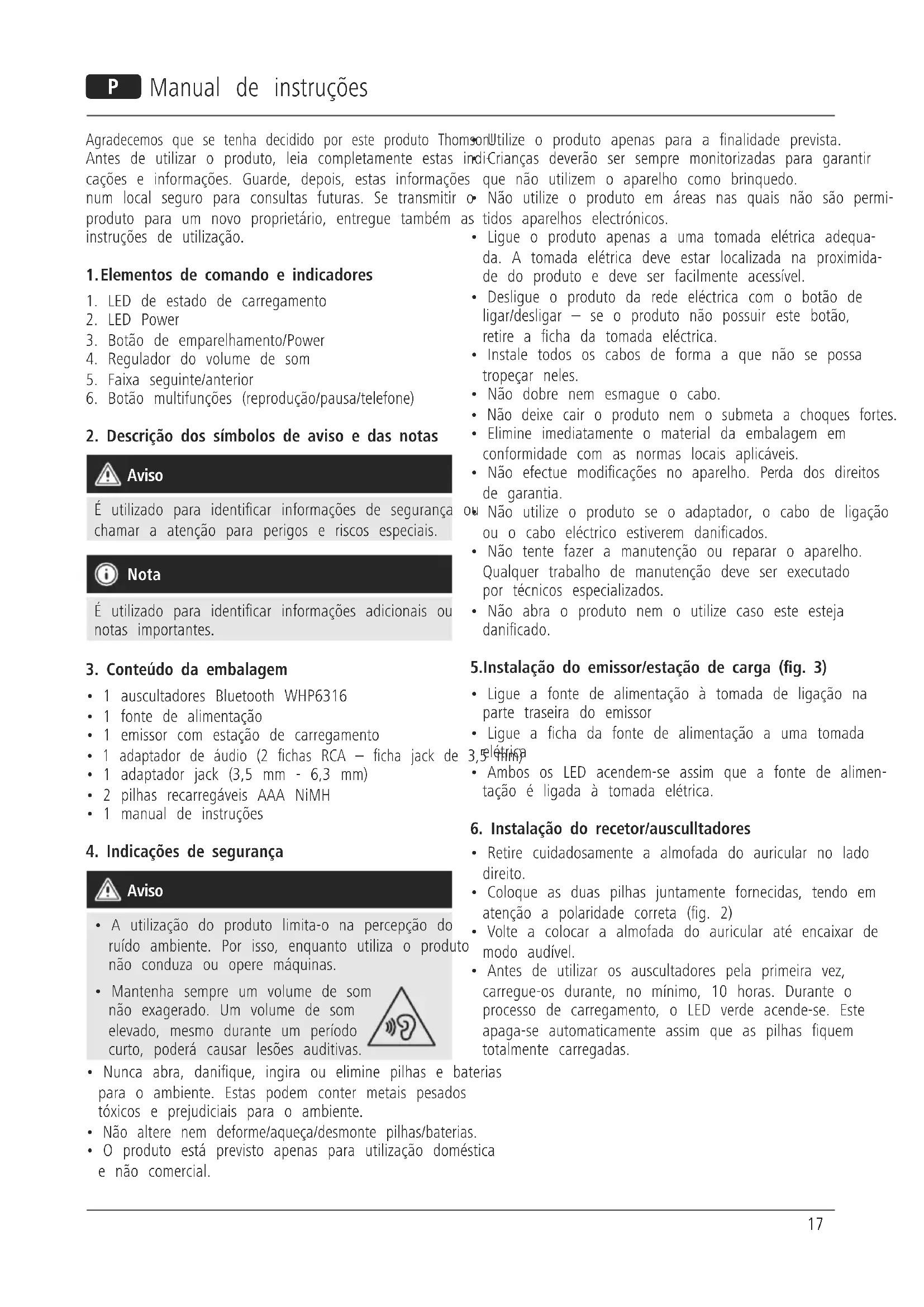 - A utilização do produto limita-o na percepção do ruído ambiente. Por isso, enquanto utiliza o produto não conduza ou opere máquinas.