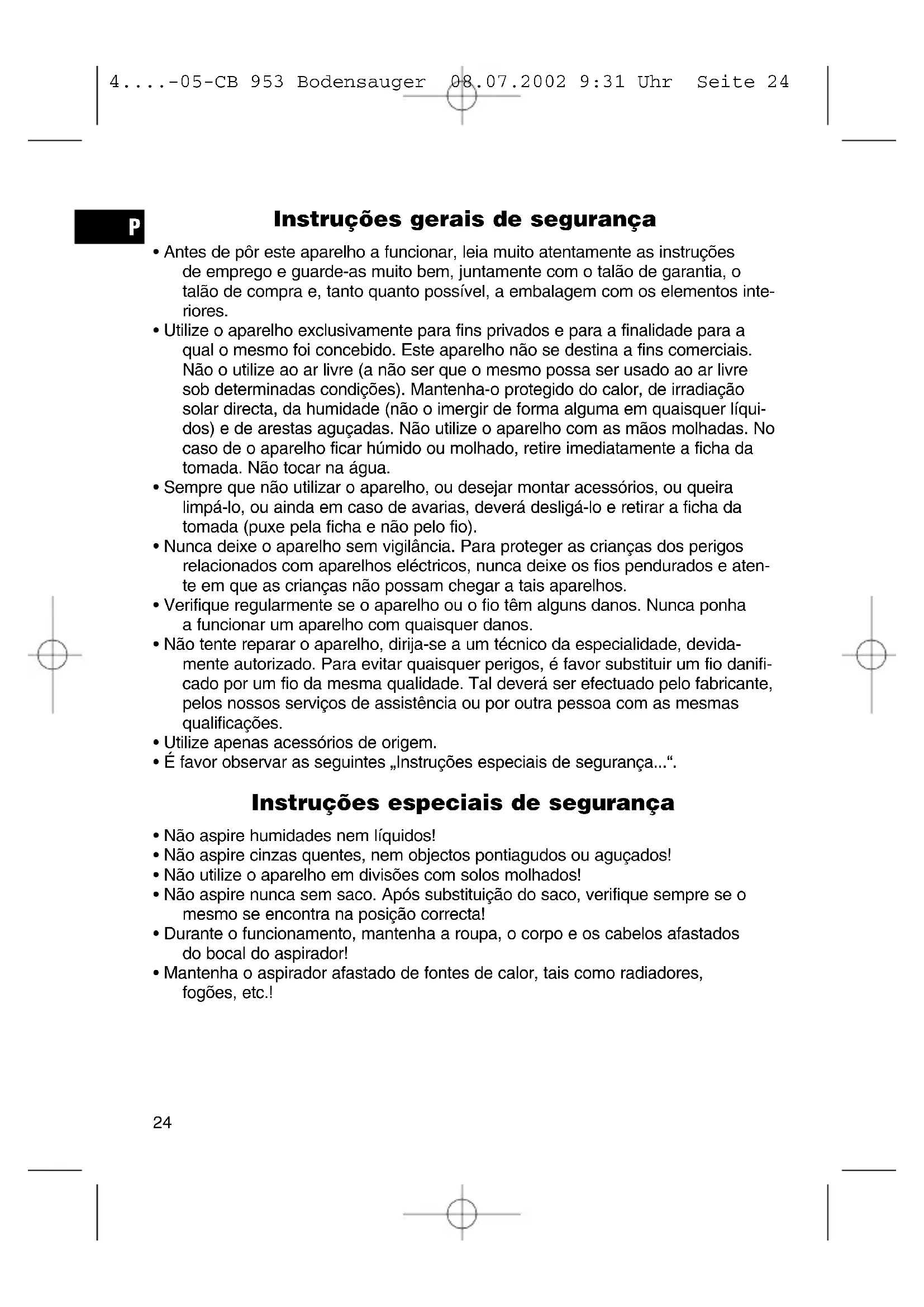 4....-05-CB 953 Bodensauger 08.07.2002 9:31 Uhr Seite 24Primeira utilização Elementos do aparelho