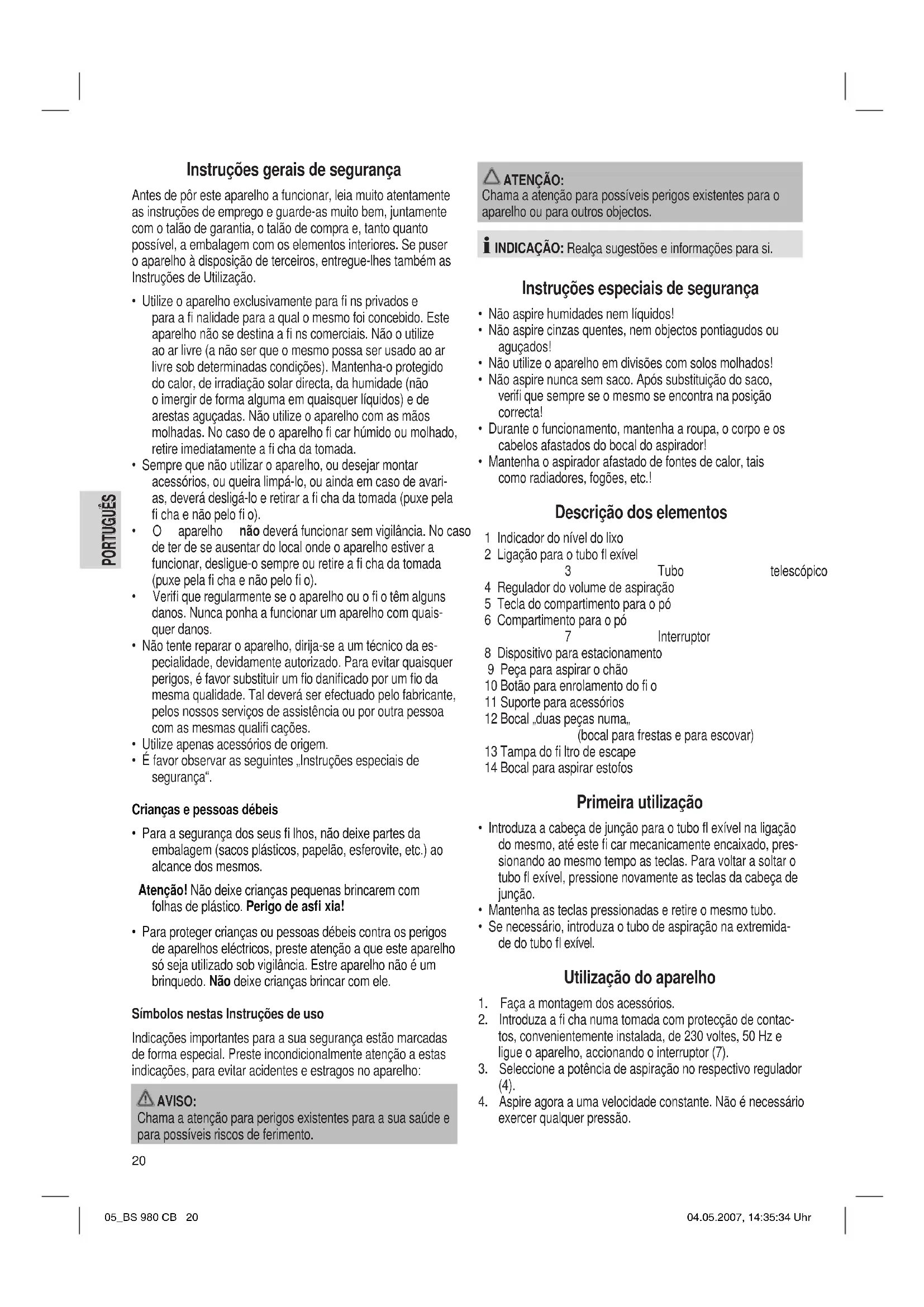 exercer qualquer pressão. 05_BS 980 CB 20 04.05.2007, 14:35:34 UhrPORTUGUÊS