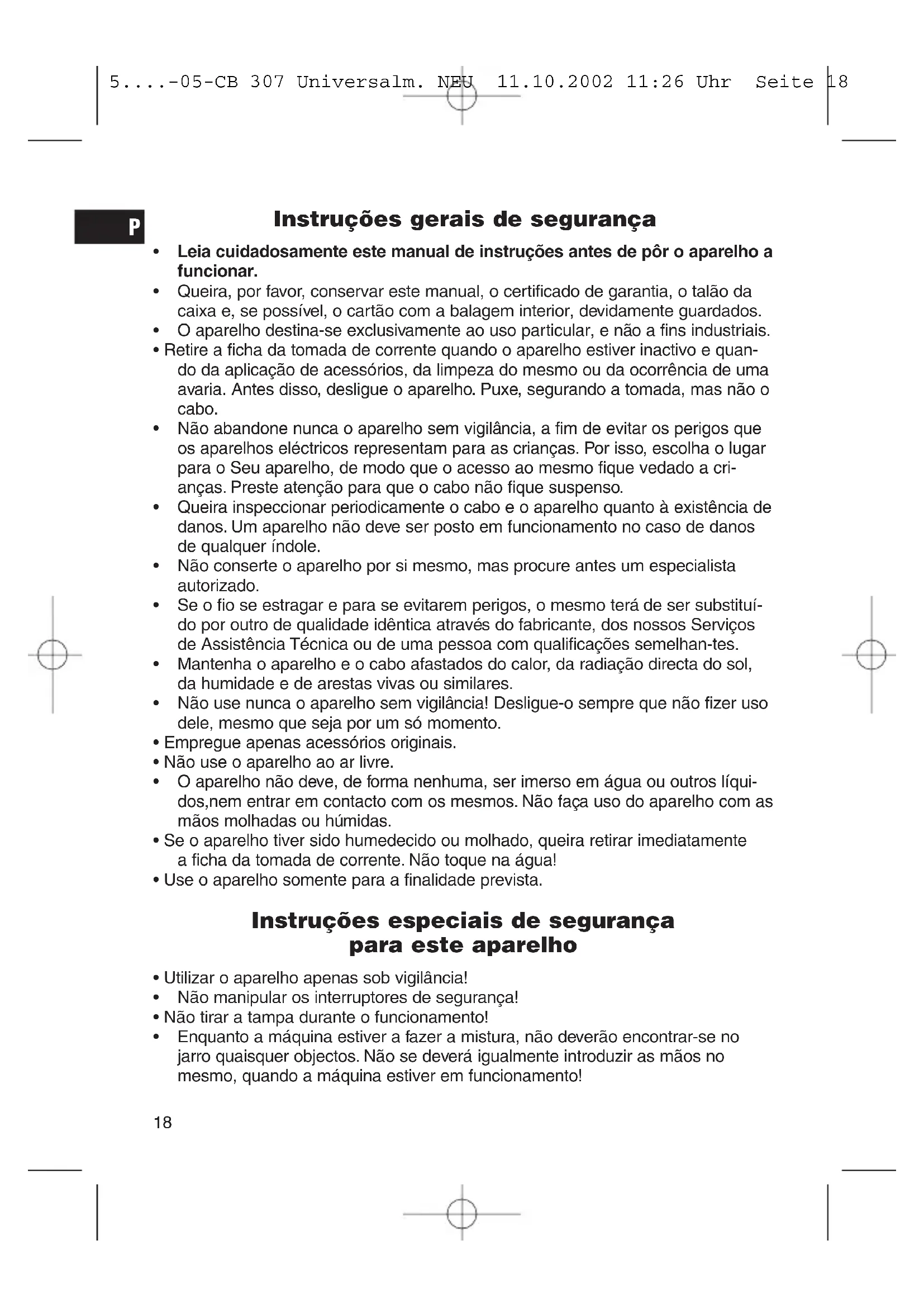 5....-05-CB 307 Universalm. NEU 11.10.2002 11:26 Uhr Seite 18• Cuidado, as lâminas são extremamente afiadas! Ter muito cuidado com o seu manuseamento, inclusive quando se proceder à sua lavagem!