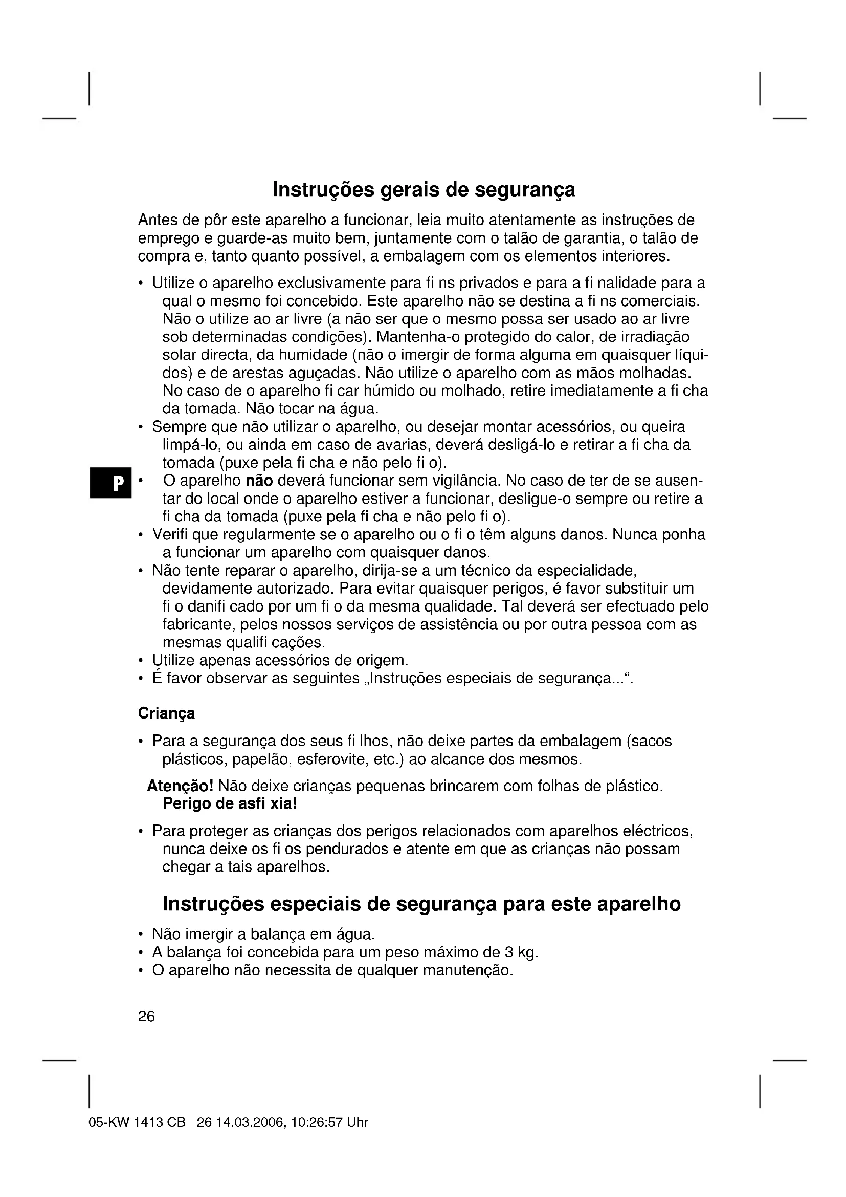 - O aparelho não necessita de qualquer manutenção. 05-KW 1413 CB 26 14.03.2006, 10:26:57 UhrP