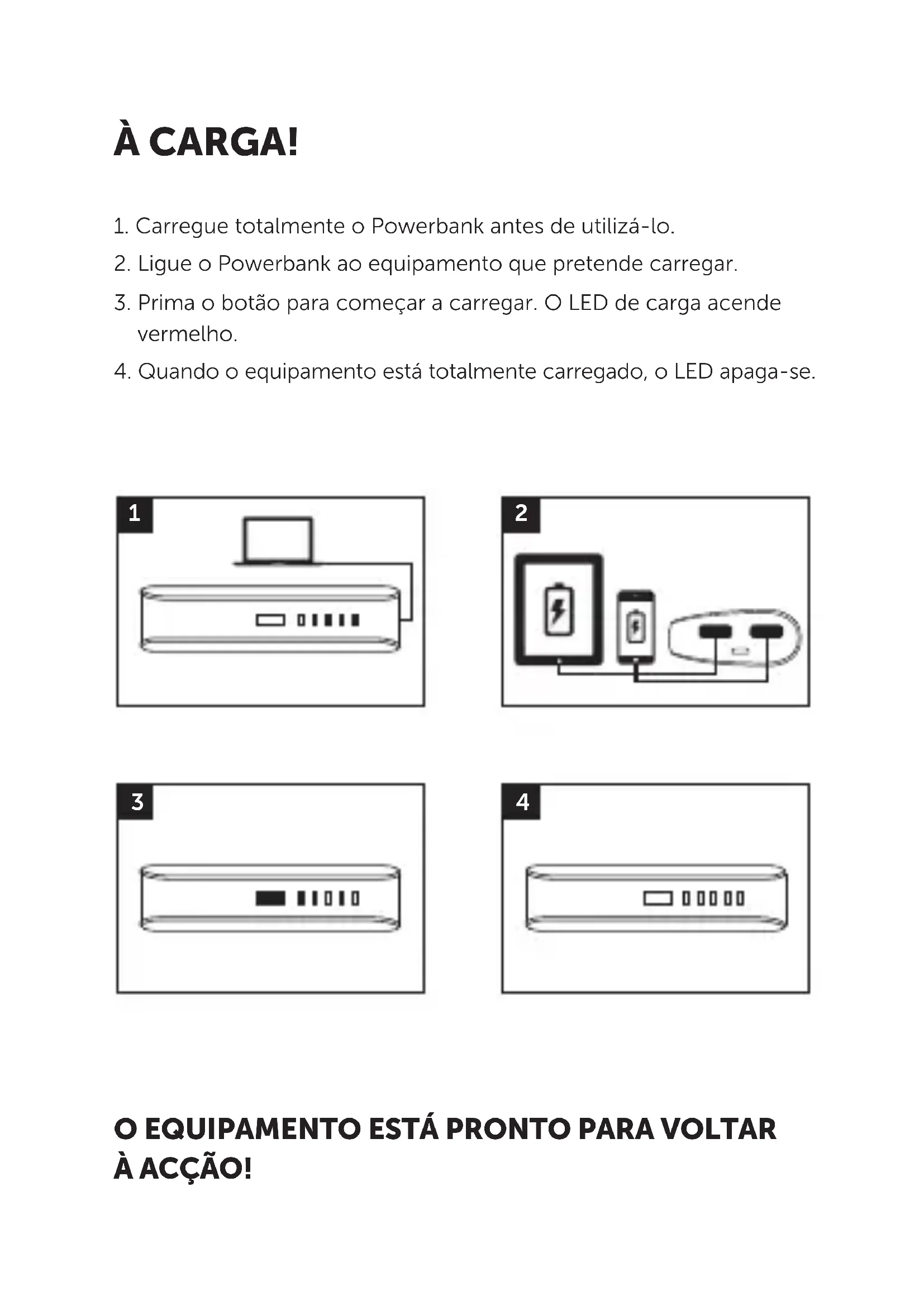 - Ligue o Powerbank ao equipamento que pretenderegarar.