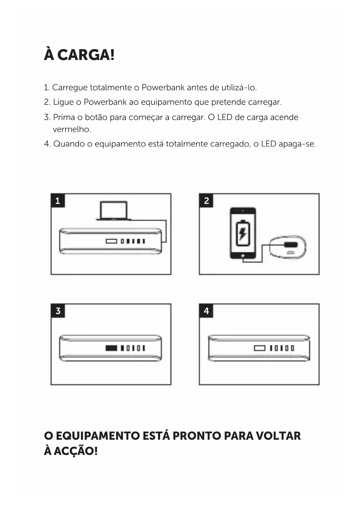 Carregue totalmente o Powerbank antes de utilizá-lo.